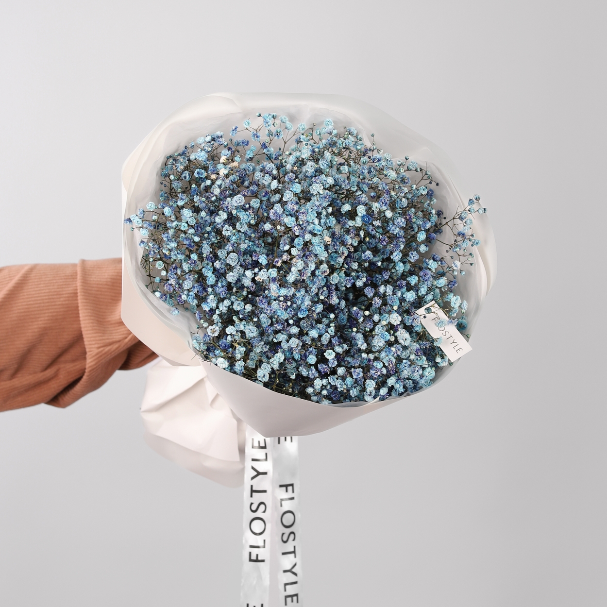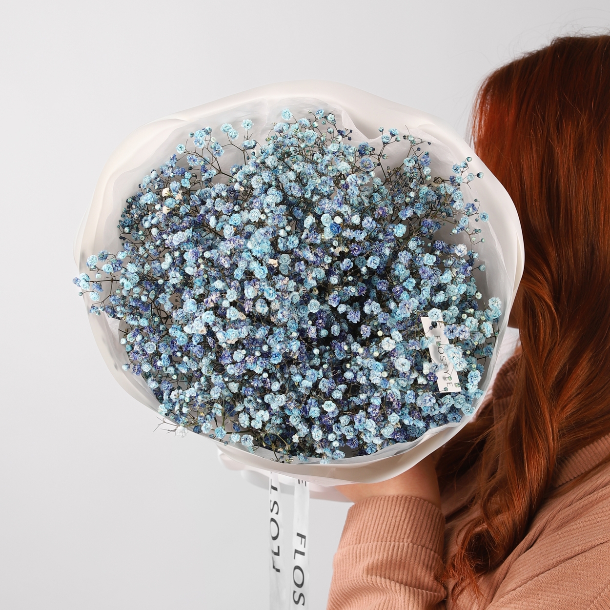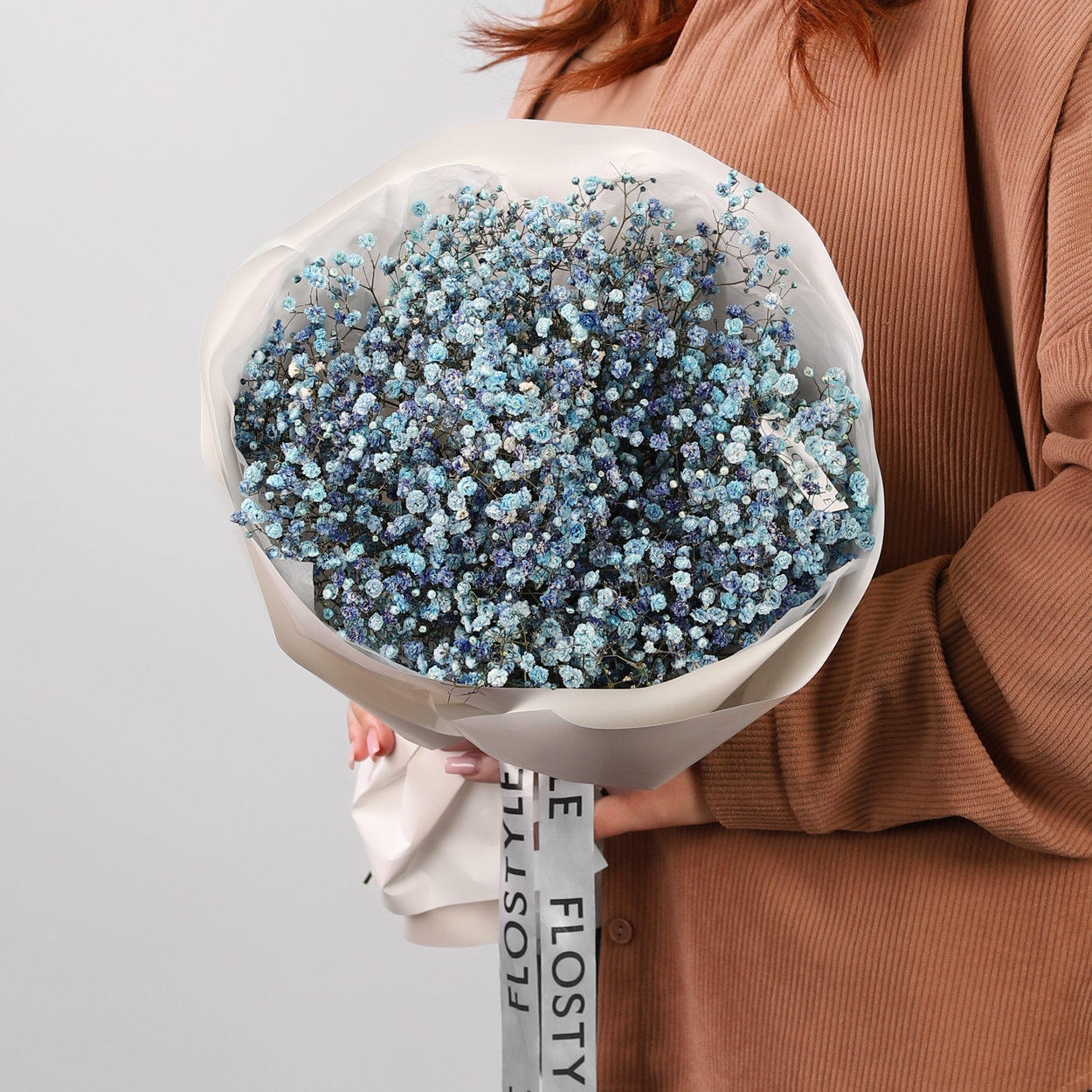 Состав: Гипсофила Blue - 5 шт, Тишью белая, Матовая пленка белая кругом