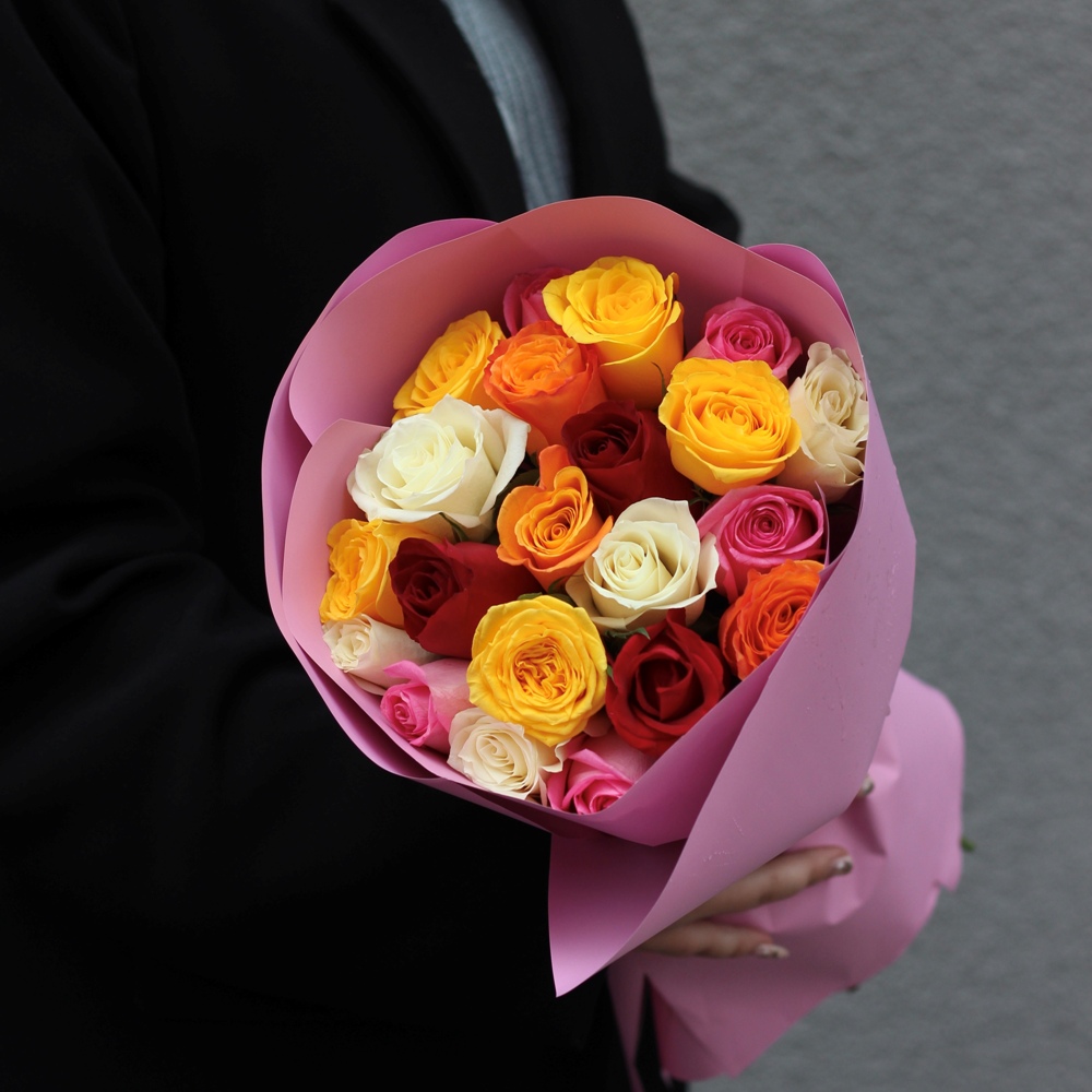 Состав: Роза Kenya микс — 15 шт, Матовая пленка розовая кругом