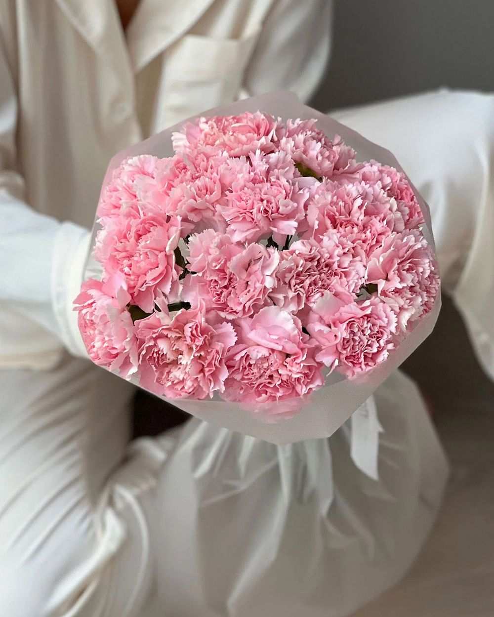 Состав: Диантус Pink - 15 шт, Матовая пленка белая кругом