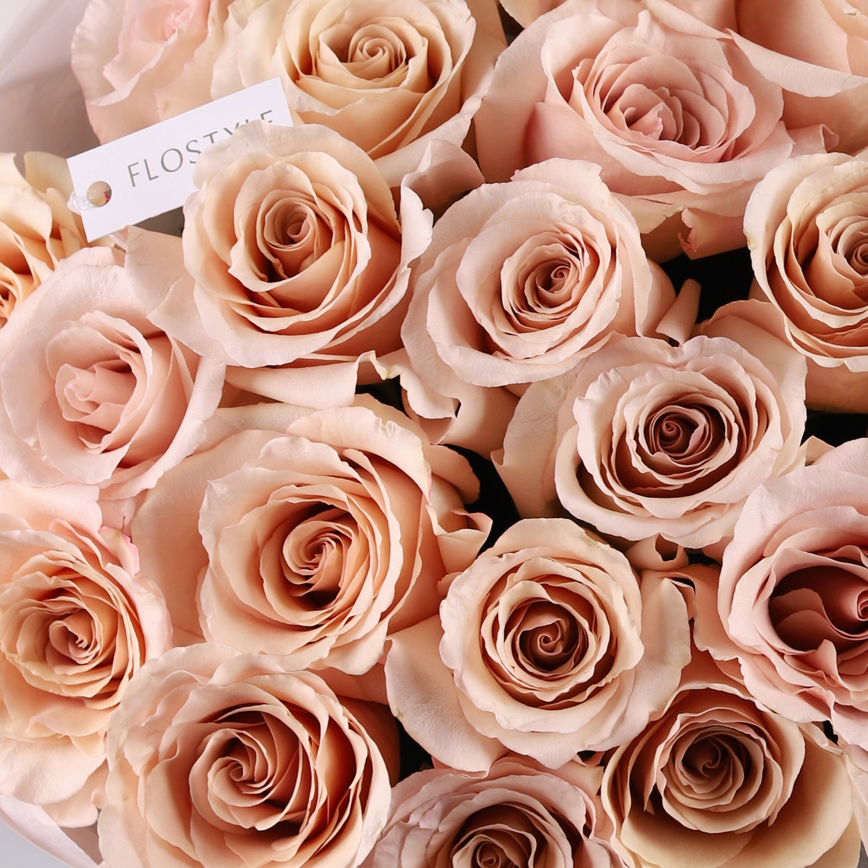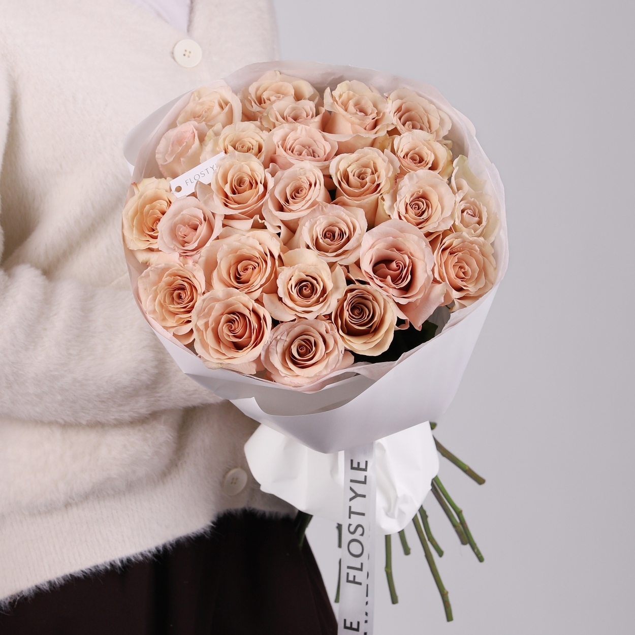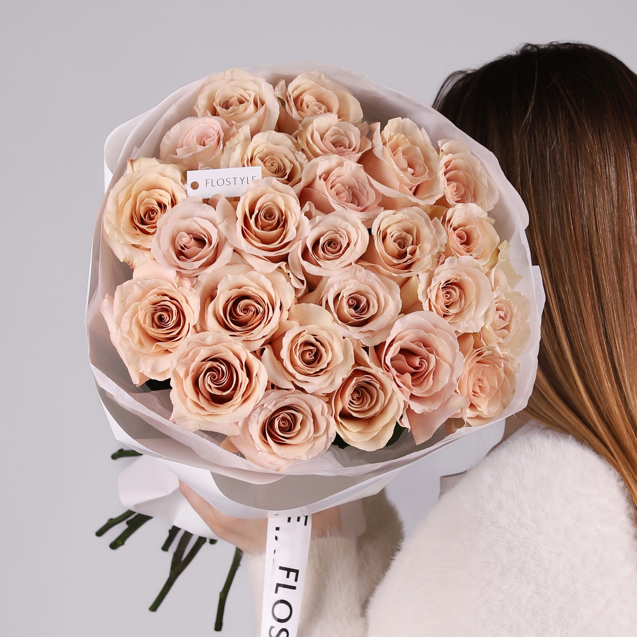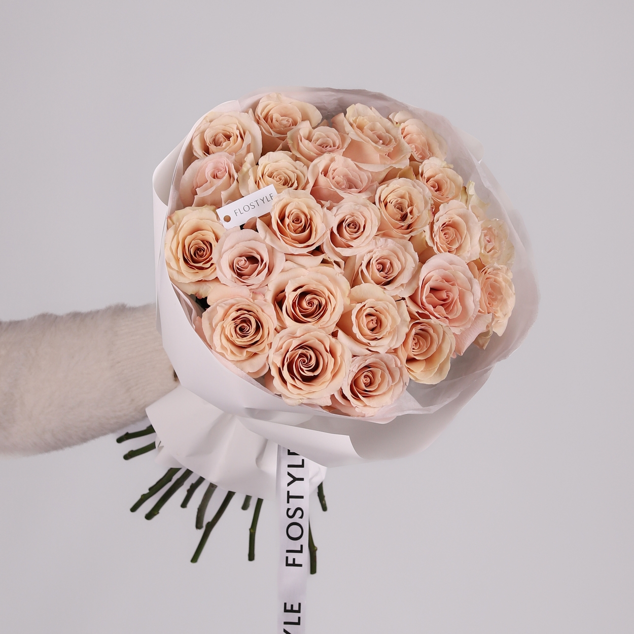 Состав: Роза Quicksand - 25 шт, Тишью белая, Матовая пленка белая кругом