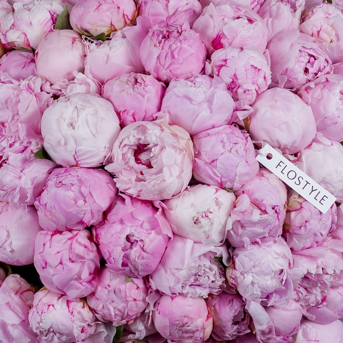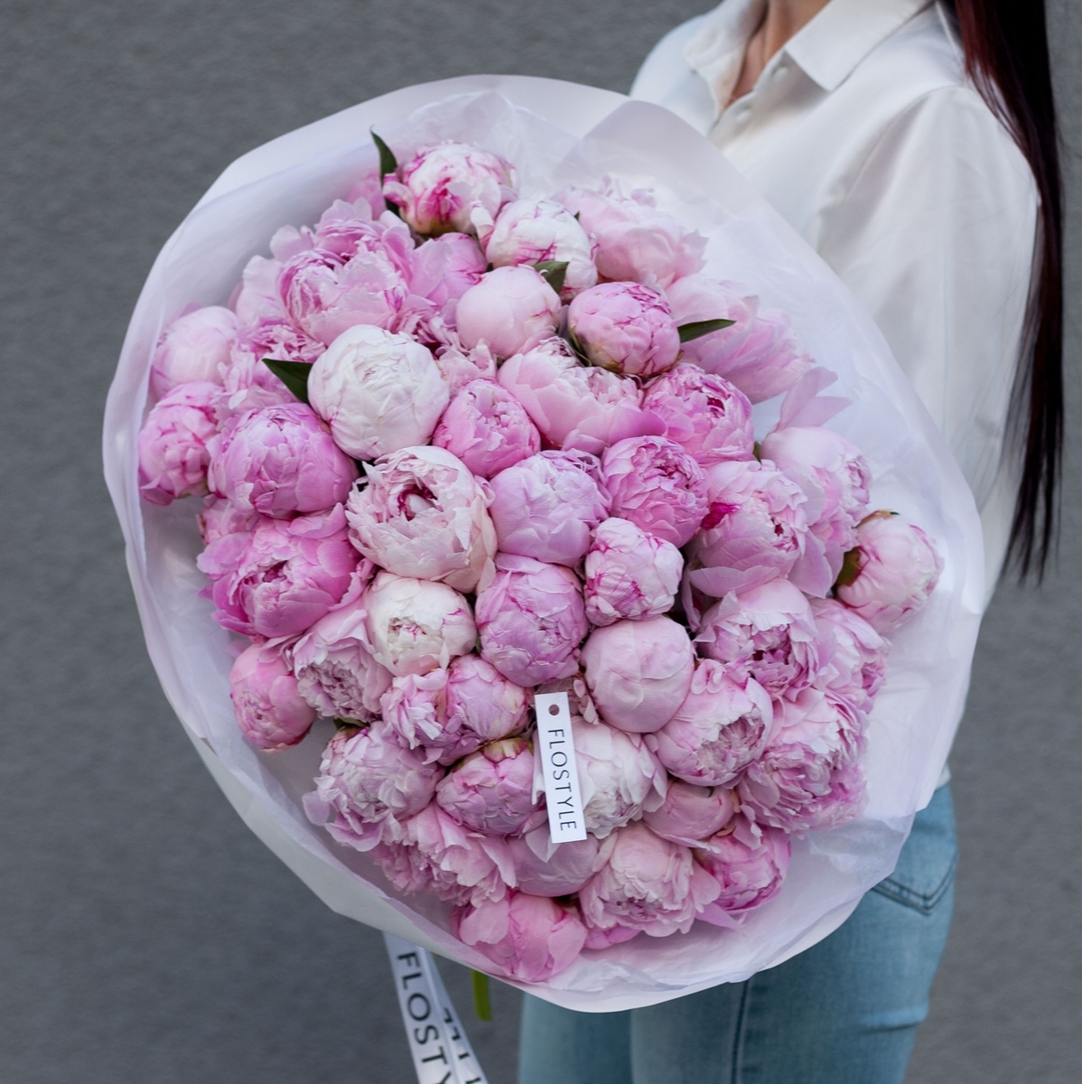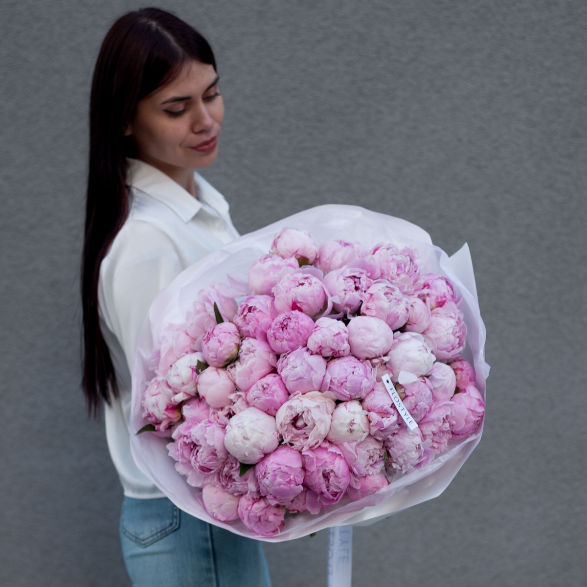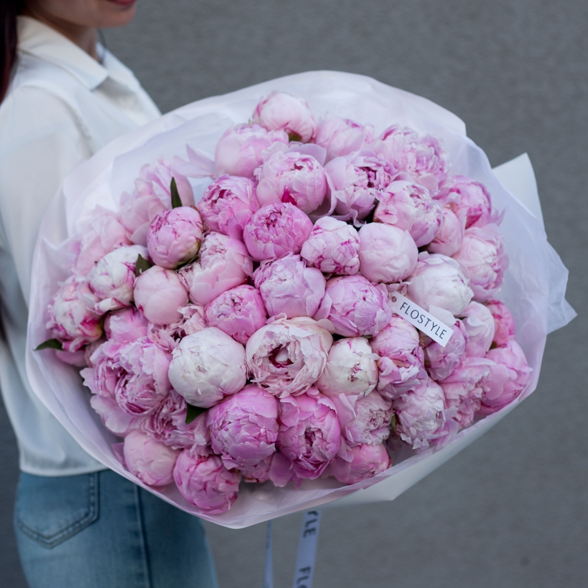 Состав: Пионы Sarah Bernhardt - 51 шт, Тишью белая, Матовая пленка белая кругом