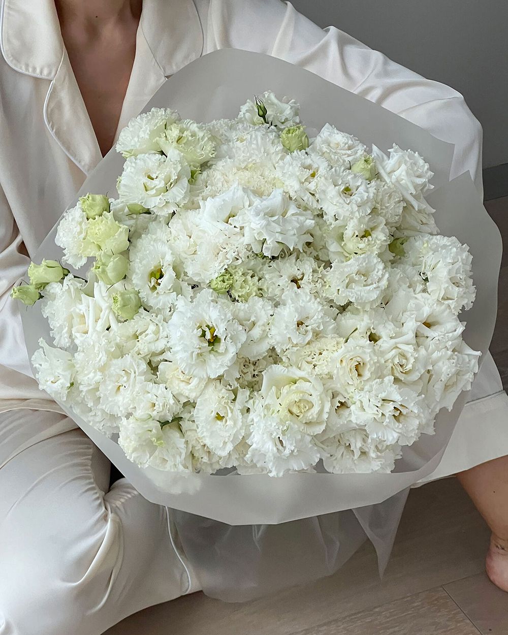 Состав: Эустома White — 25 шт, Матовая пленка прозрачная кругом