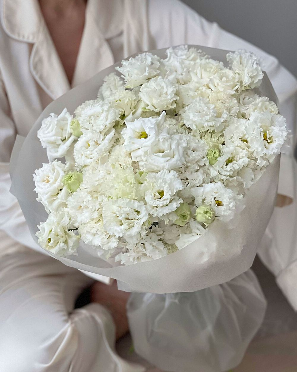 Состав: Эустома White — 35 шт, Матовая пленка прозрачная кругом