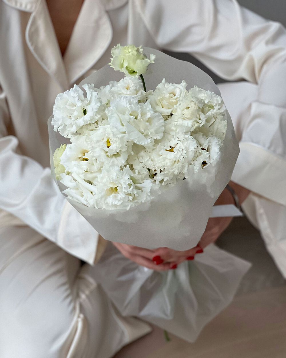 Состав: Эустома White — 9 шт, Матовая пленка прозрачная кругом