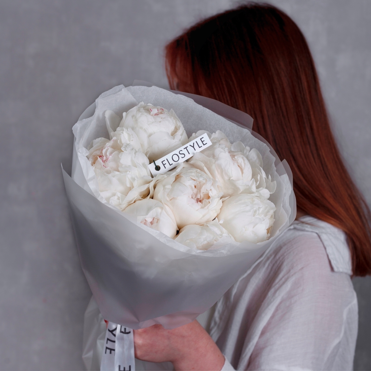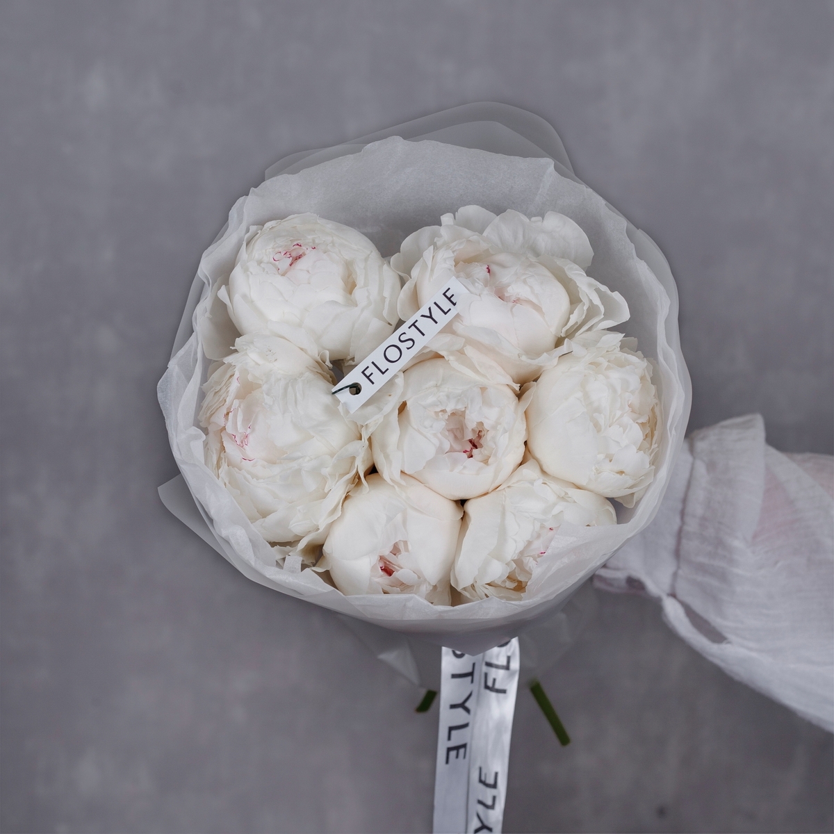 Состав: Пионы White - 7 шт, Тишью белая, Матовая пленка белая кругом