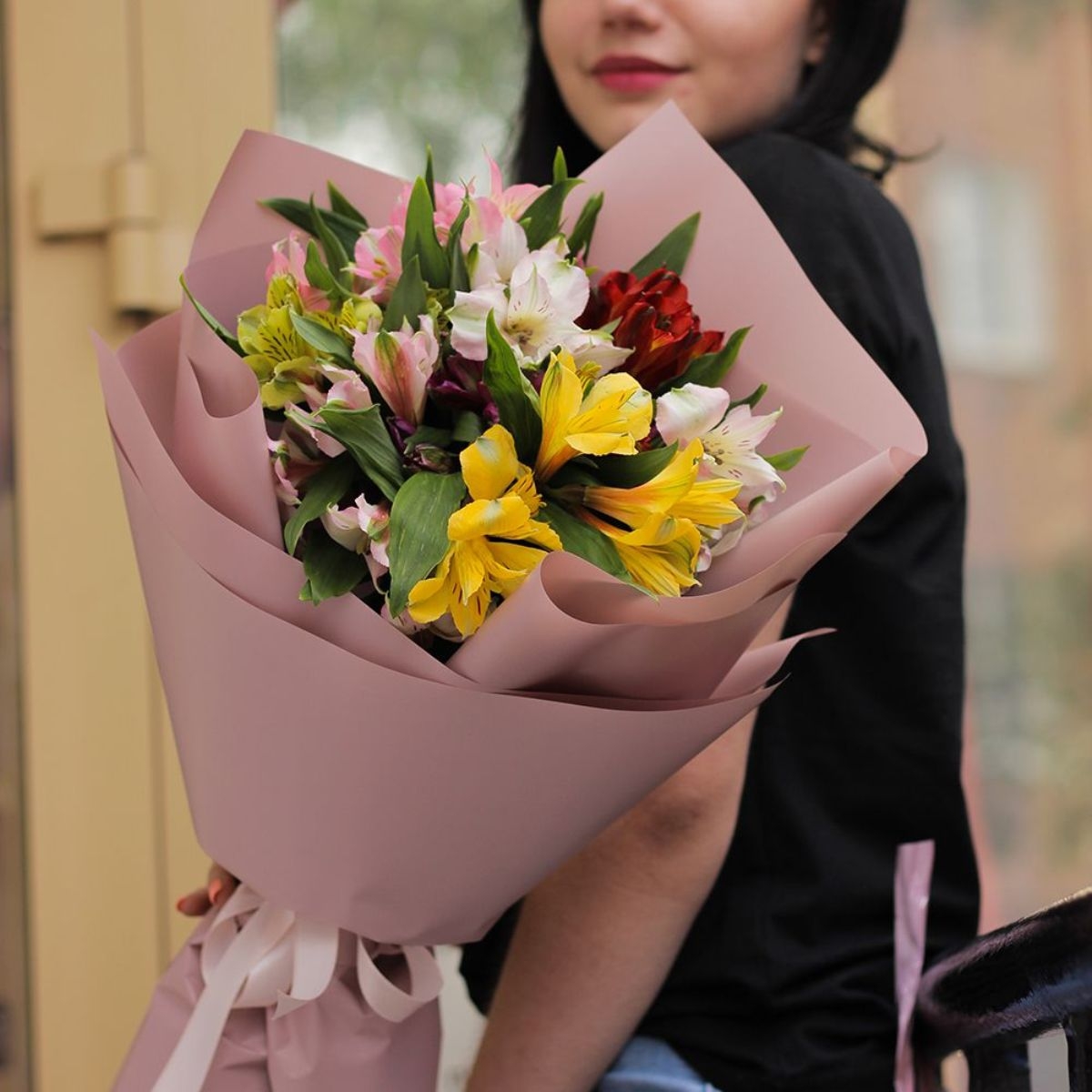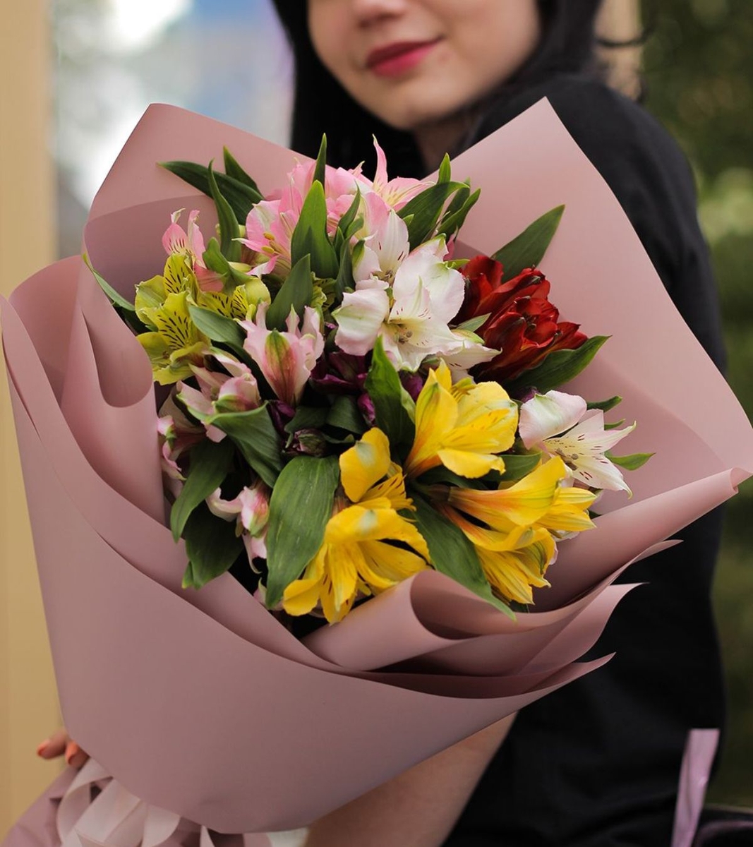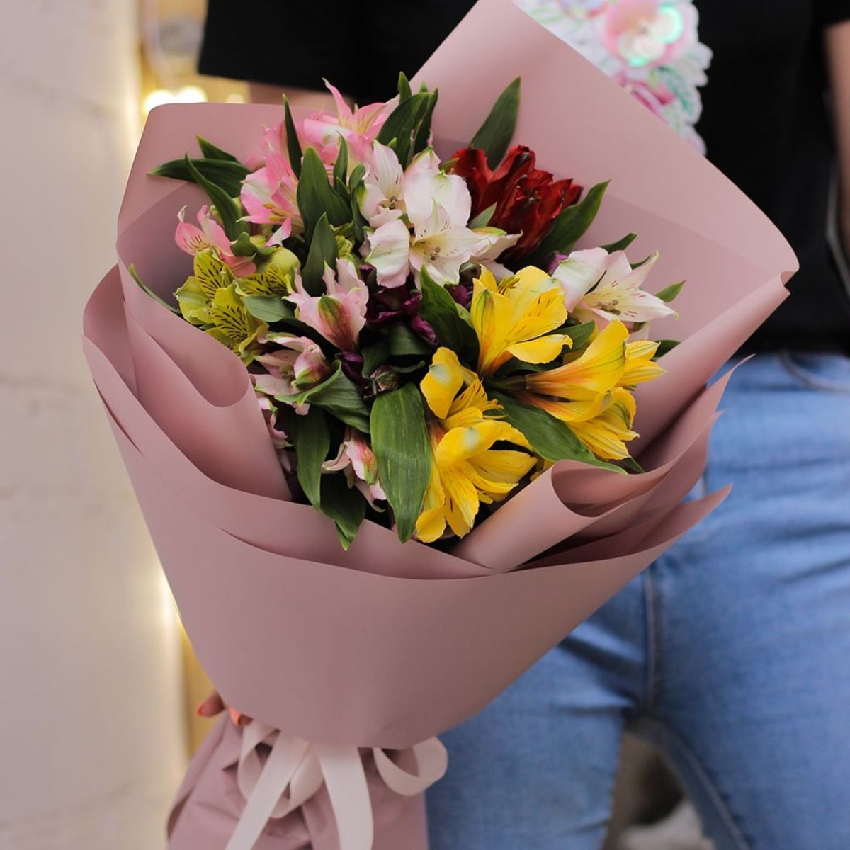 Состав: Альстромерия mix - 7 шт, Матовая пленка пудровая складками