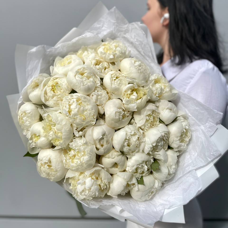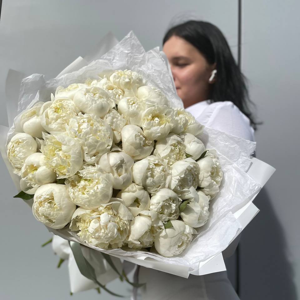 Состав: Пион White - 31 шт, Тишью белая, Матовая пленка белая углами