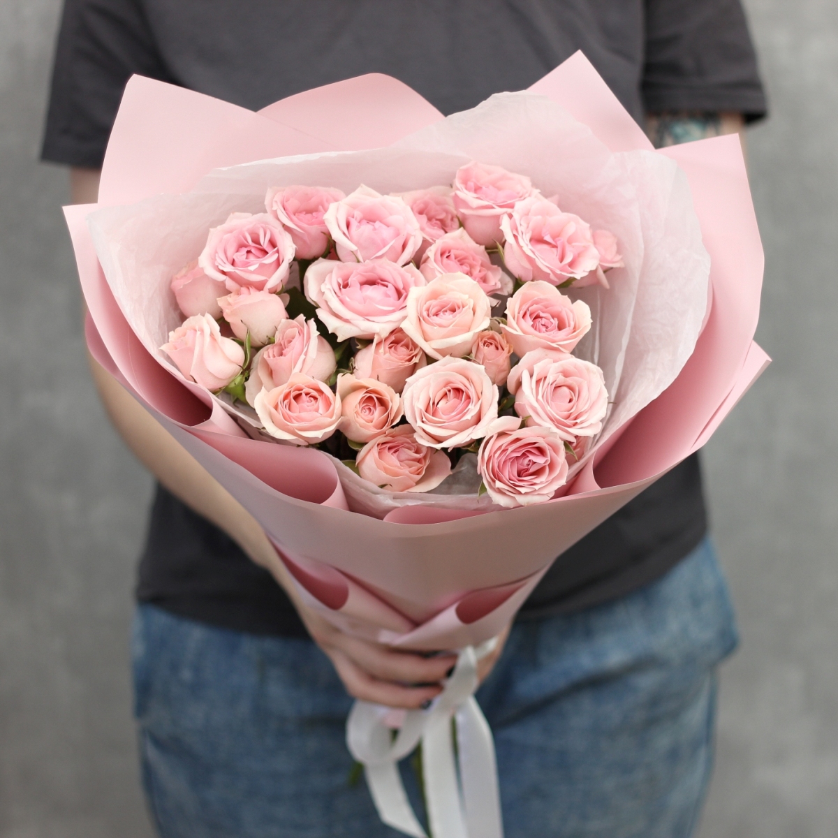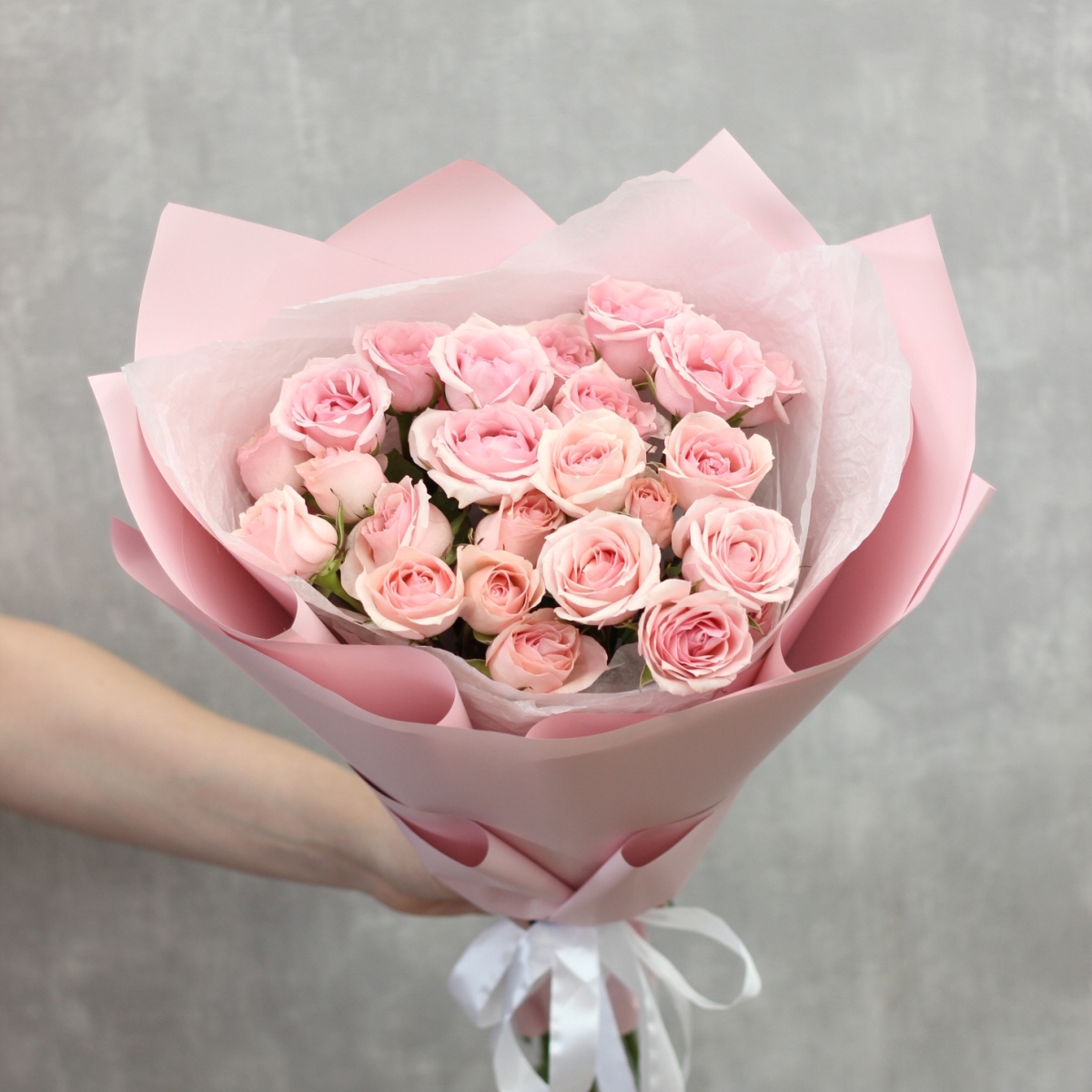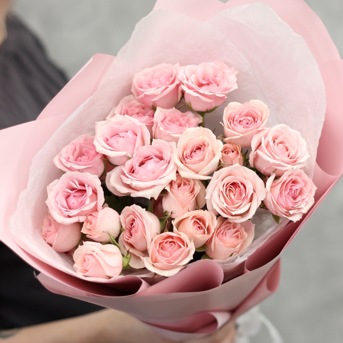 Состав: Роза кустовая Star Blush - 7 шт, Тишью белое, Матовая пленка розовая углами