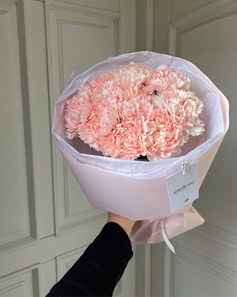 Состав: Диантус Pink - 11 шт, Тишью белая, Матовая пленка розовая кругом
