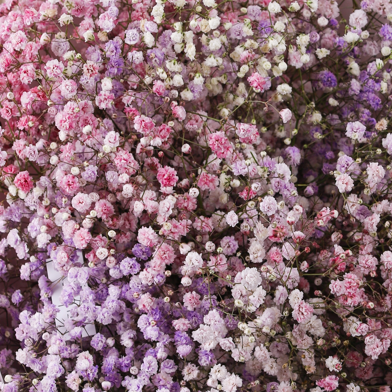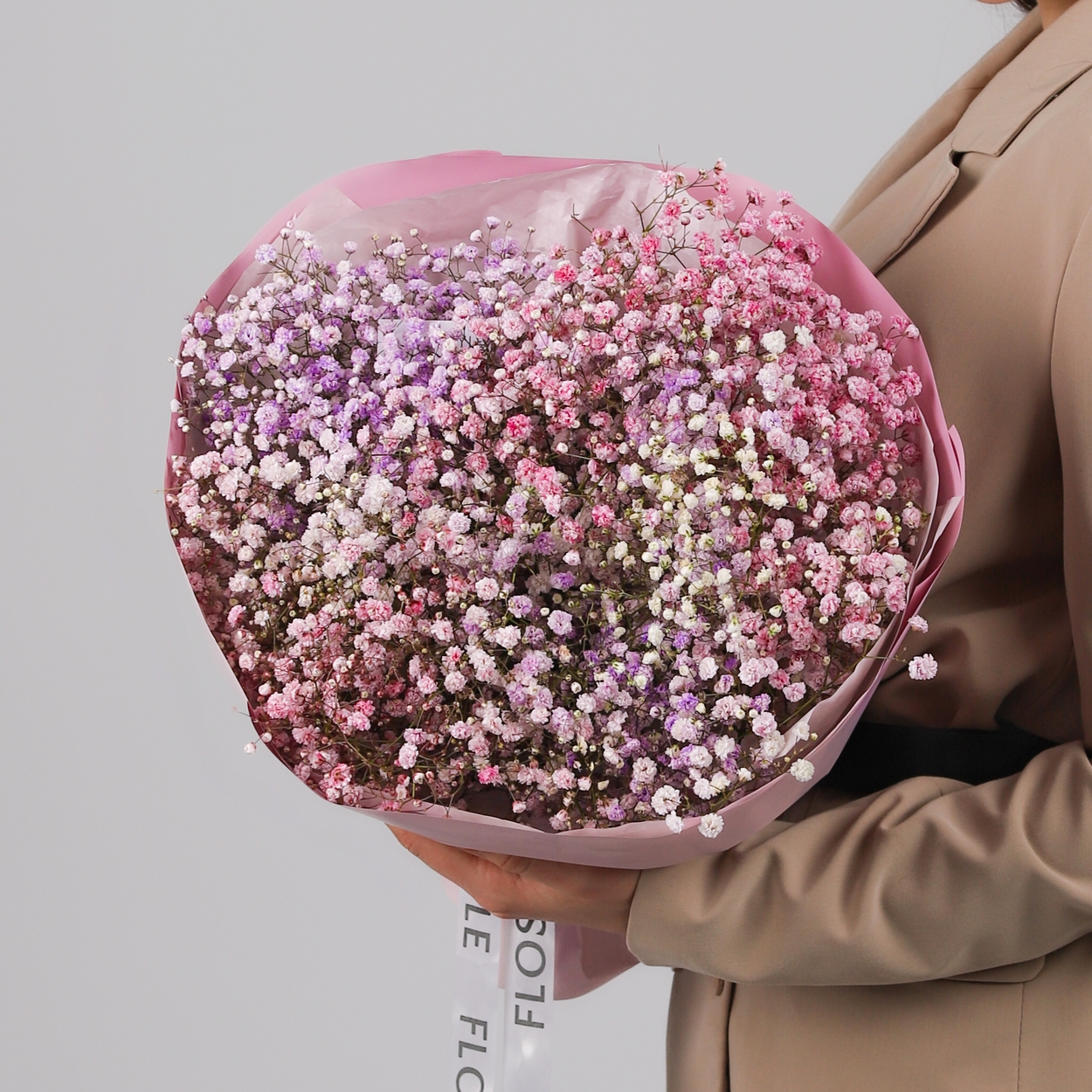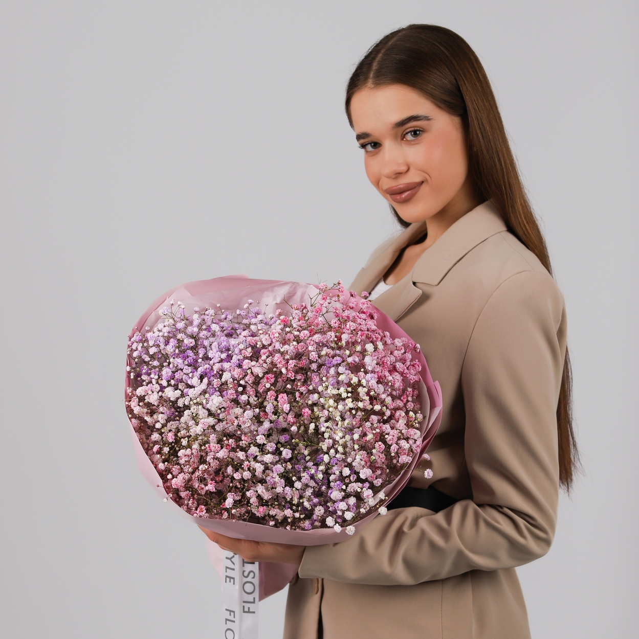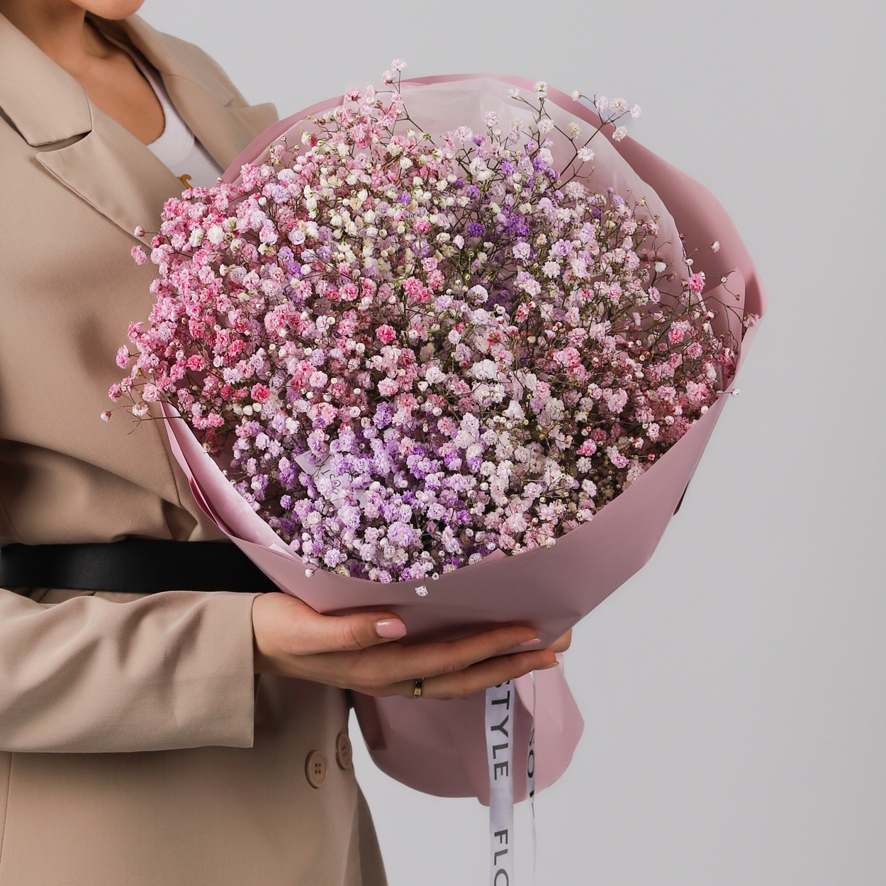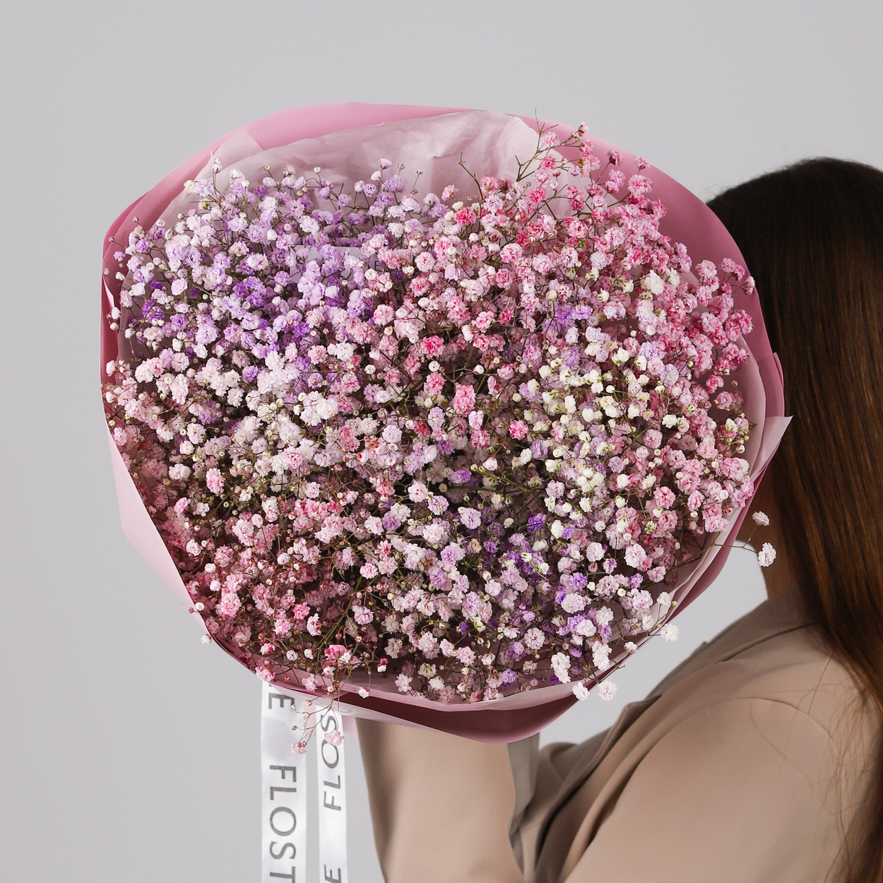 Состав: Гипсофила Pink/Purple - 7 шт, Тишью белая, Матовая пленка сиреневая кругом