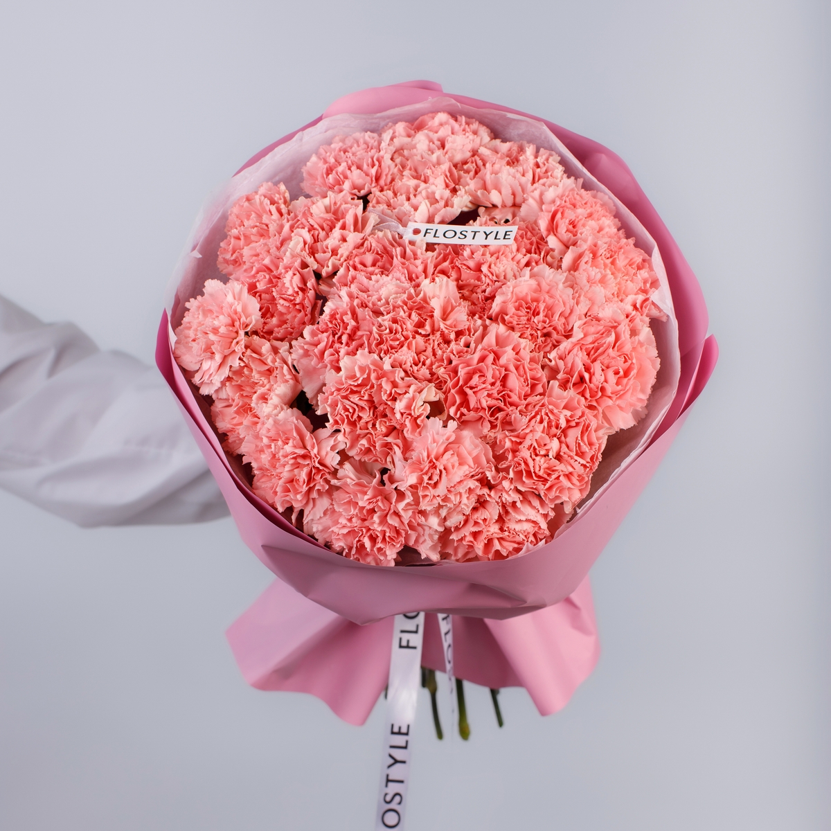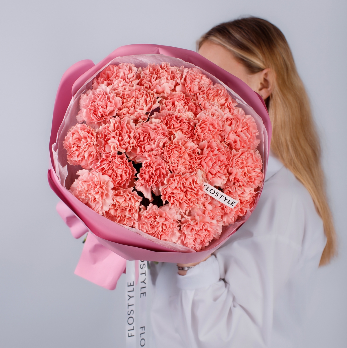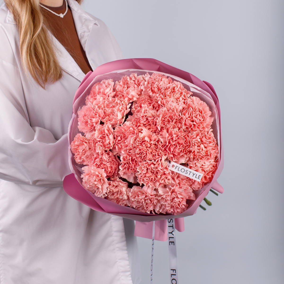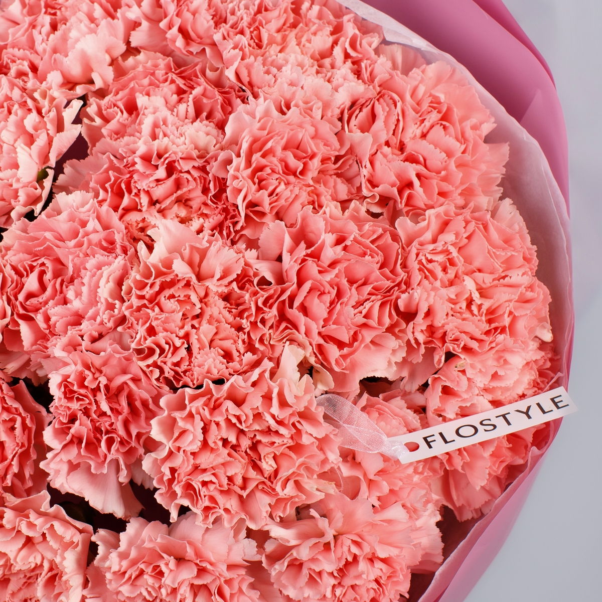 Состав: Диантус Pink - 25 шт, Тишью белая, Матовая пленка розовая кругом