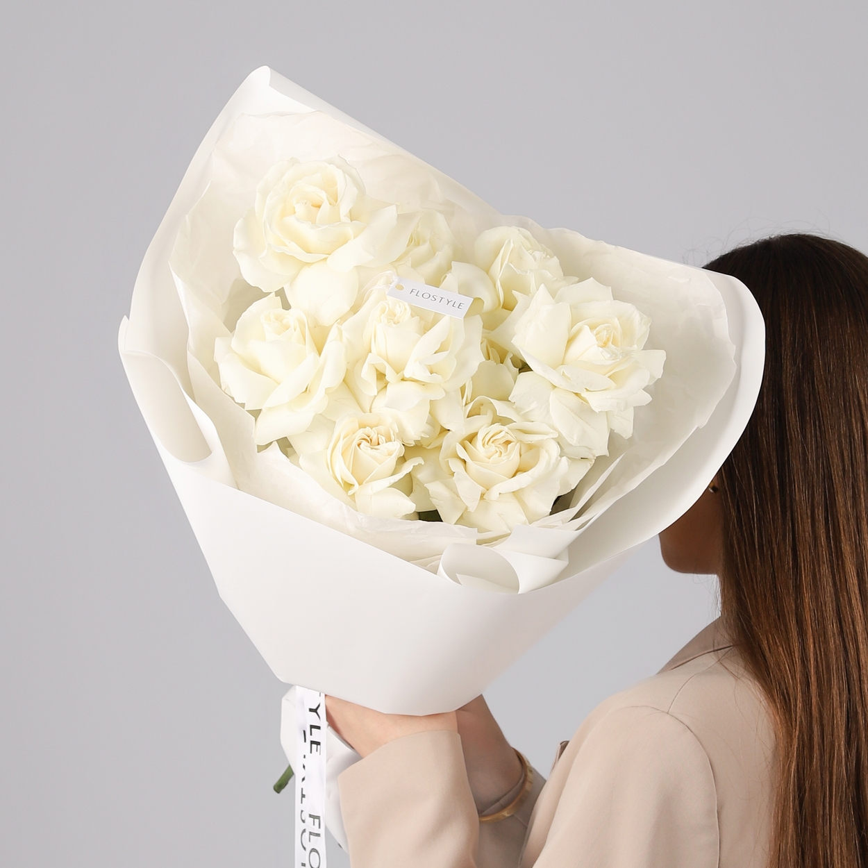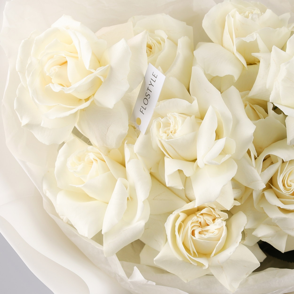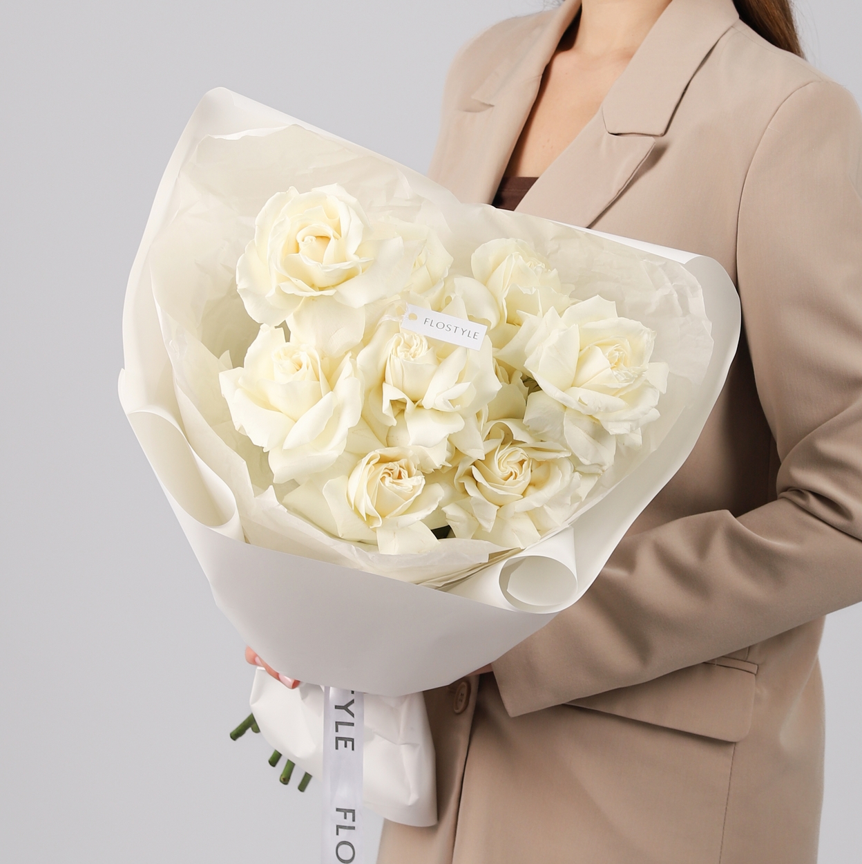 Состав: Роза Playa Blanca французская - 9 шт, Тишью белая, Матовая пленка белая углами