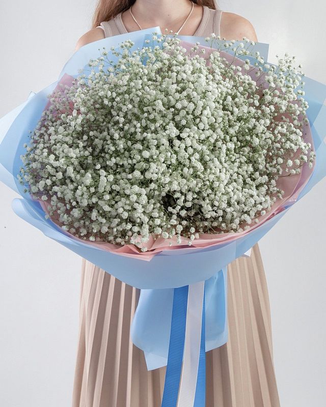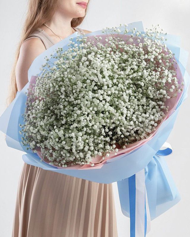 Состав: Состав: Гипсофила White - 25 шт, Тишью розовая, Матовая пленка голубая складками