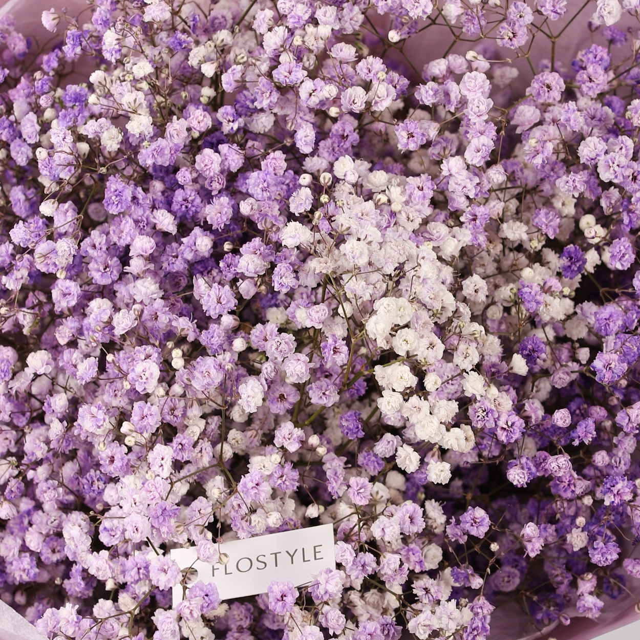 Состав: Гипсофила Purple - 5 шт, Тишью белая, Матовая пленка сиреневая кругом