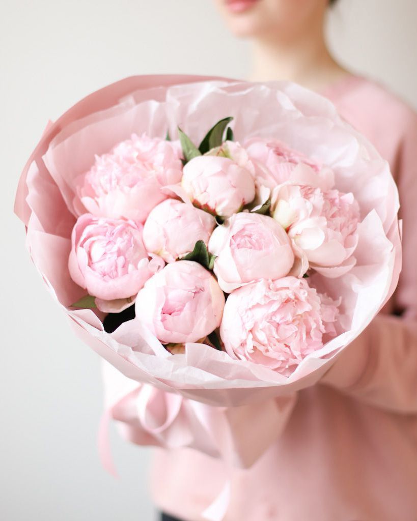 Состав: Пионы Pink - 9 шт, Тишью белая, Матовая пленка розовая кругом