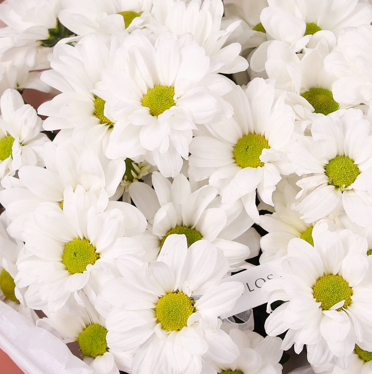 Состав: Хризантема Bacardi - 5 шт, Тишью белая, Матовая пленка розовая кругом