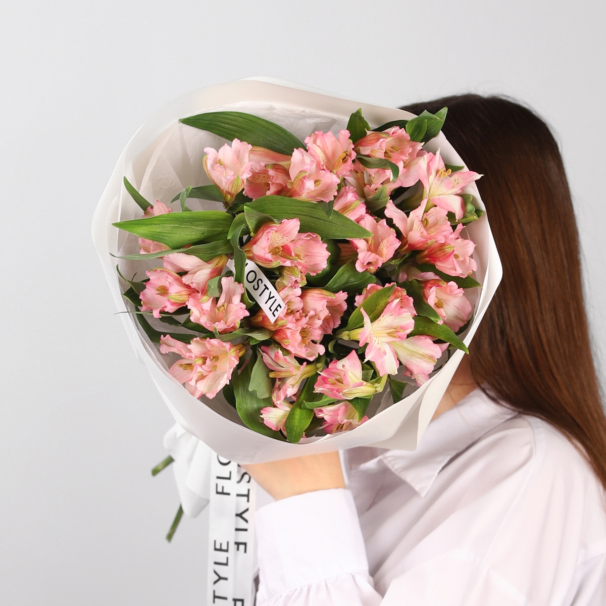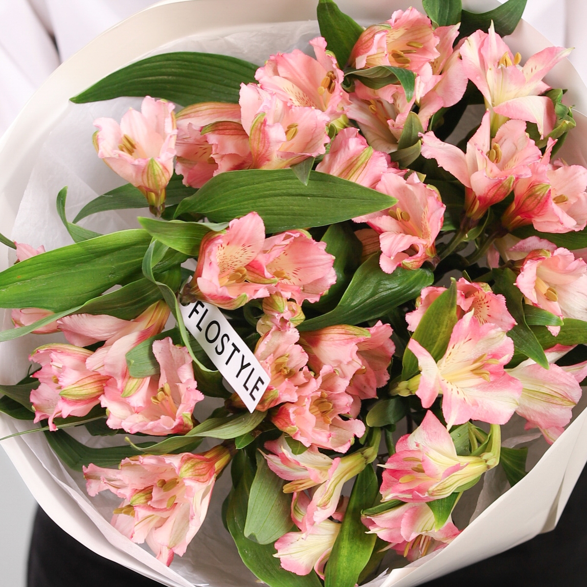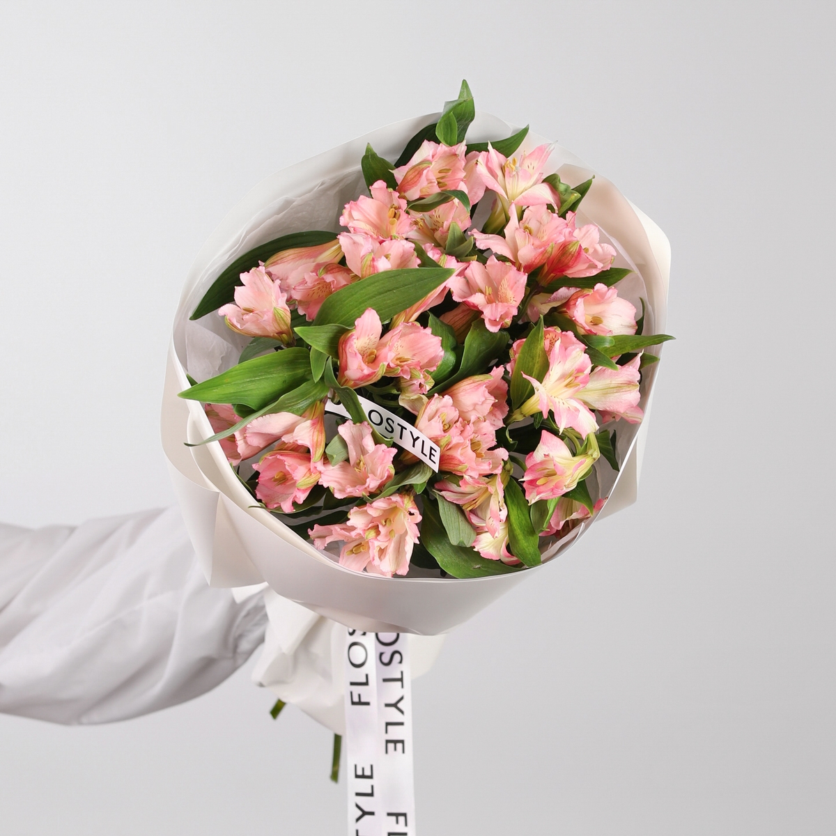 Состав: Альстромерия Pink - 7 шт, Фисташка - 1 шт, Тишью белая, Матовая пленка белая кругом