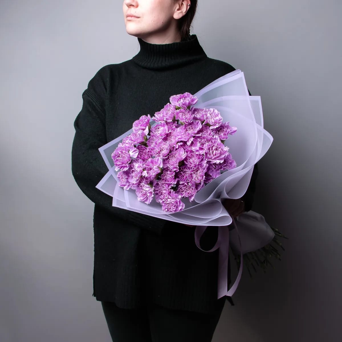 Состав: Диантус Purple - 25 шт, Матовая пленка белая углами