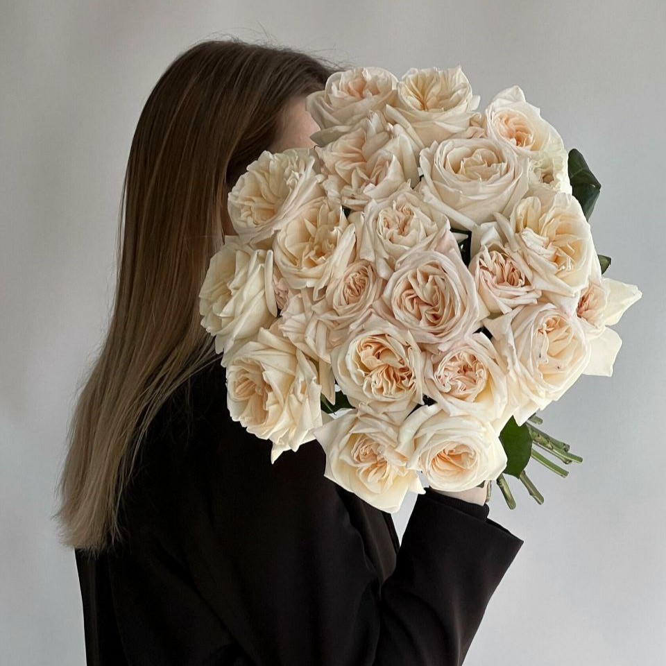 25 пионовидных роз Вайт Охара