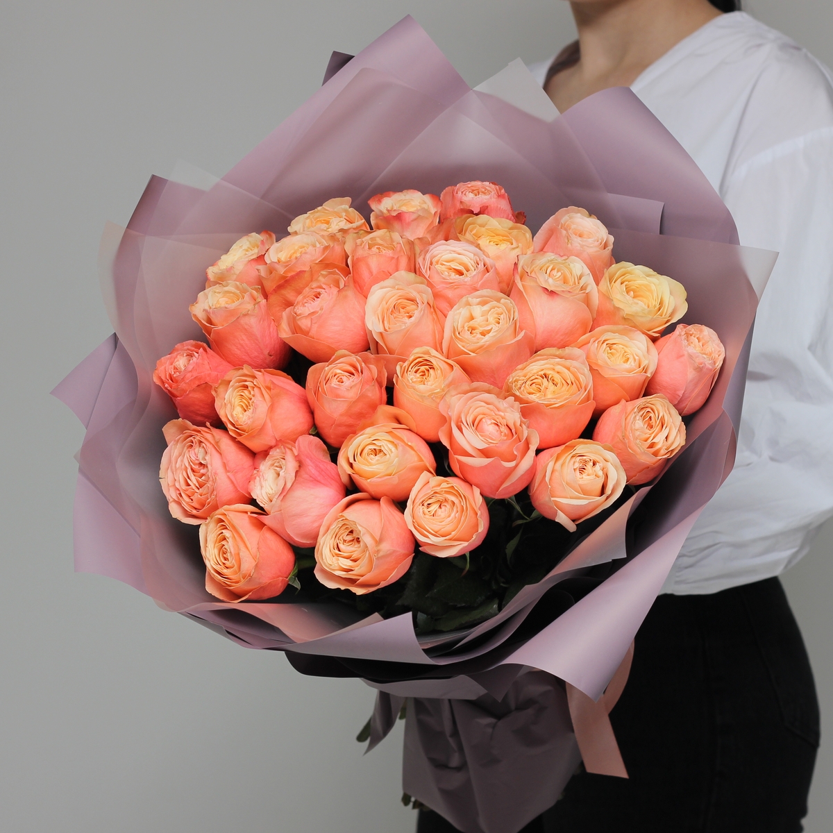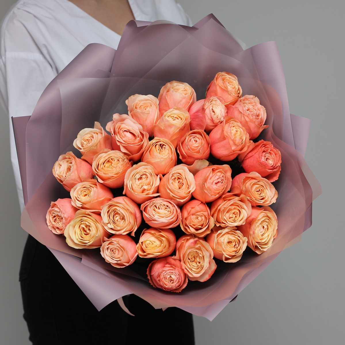 Букет 31 пионовидная роза Кахала