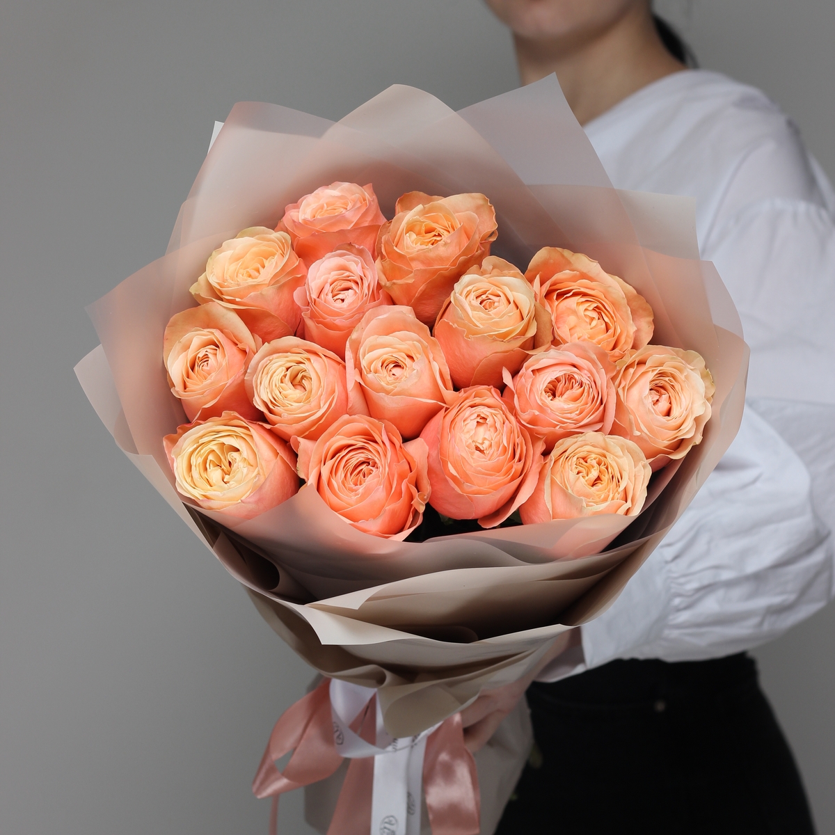 Букет из 15 персиковых роз Mutiny