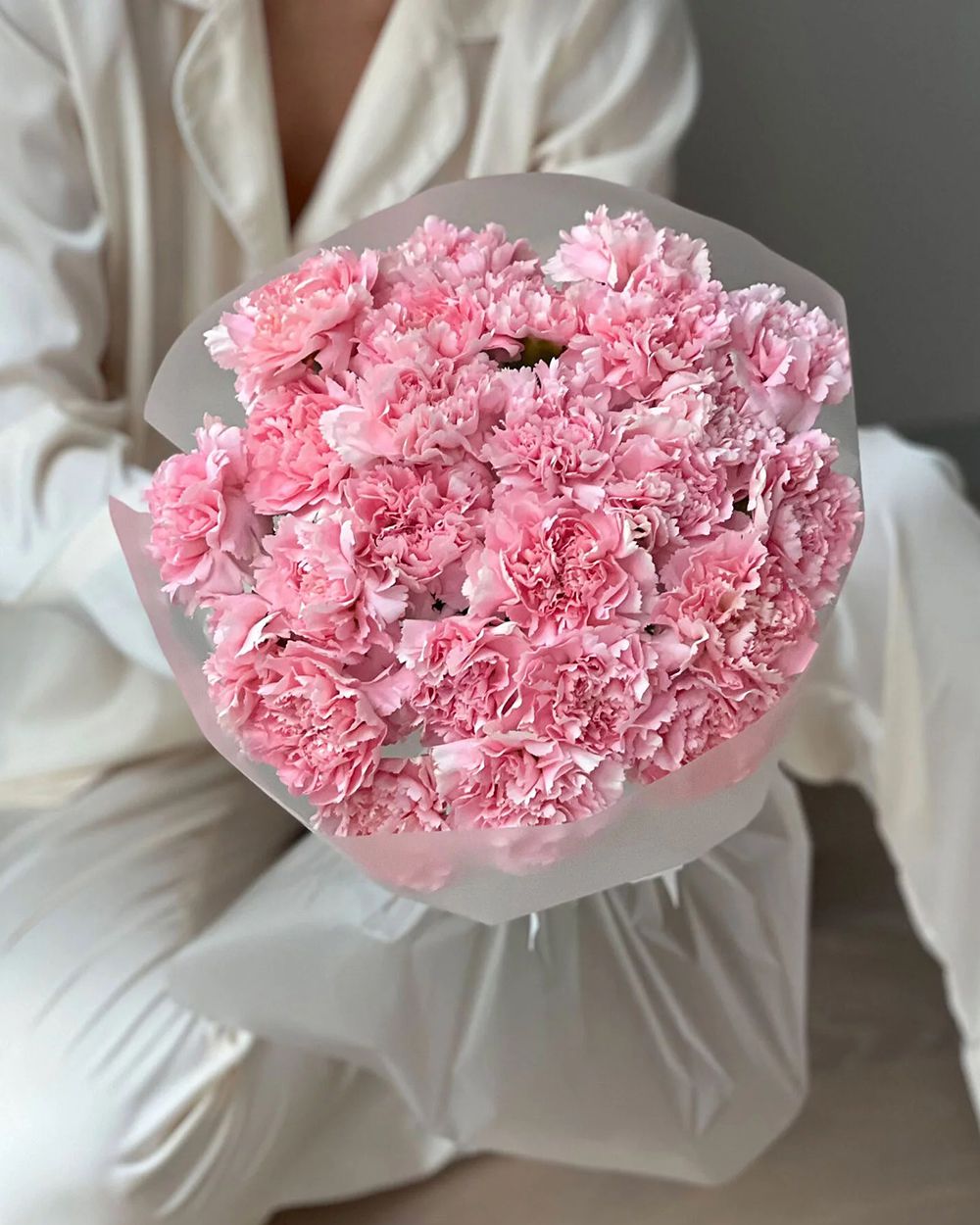 Состав:Диантус Pink - 25 шт, Матовая пленка белая кругом