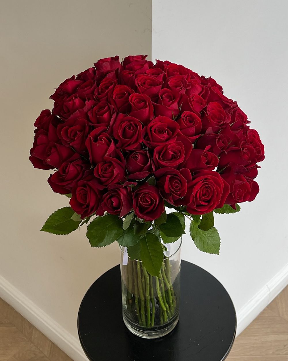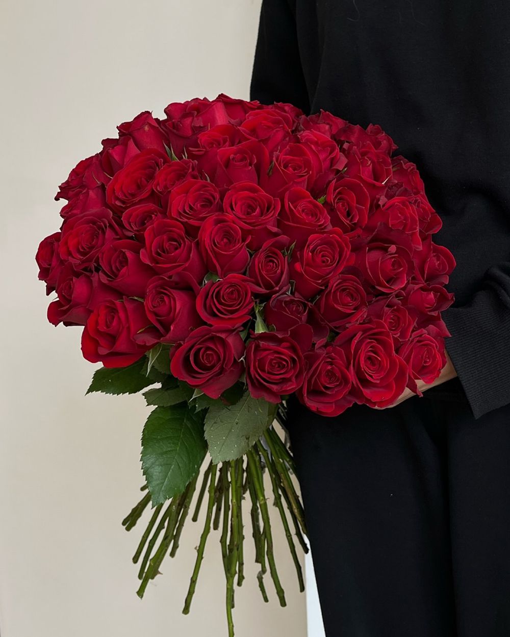 Состав: Роза Explorer - 51 шт, Атласная лента