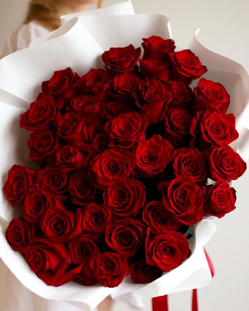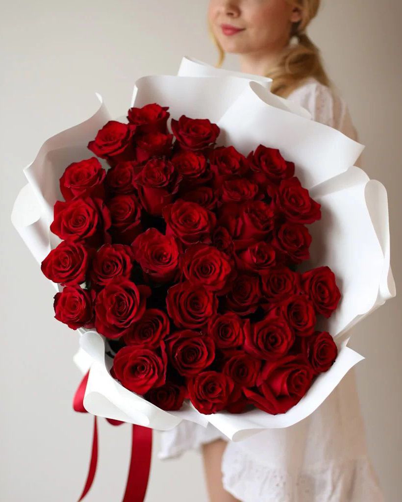 Состав: Роза Explorer - 45 шт, Матовая пленка белая складками