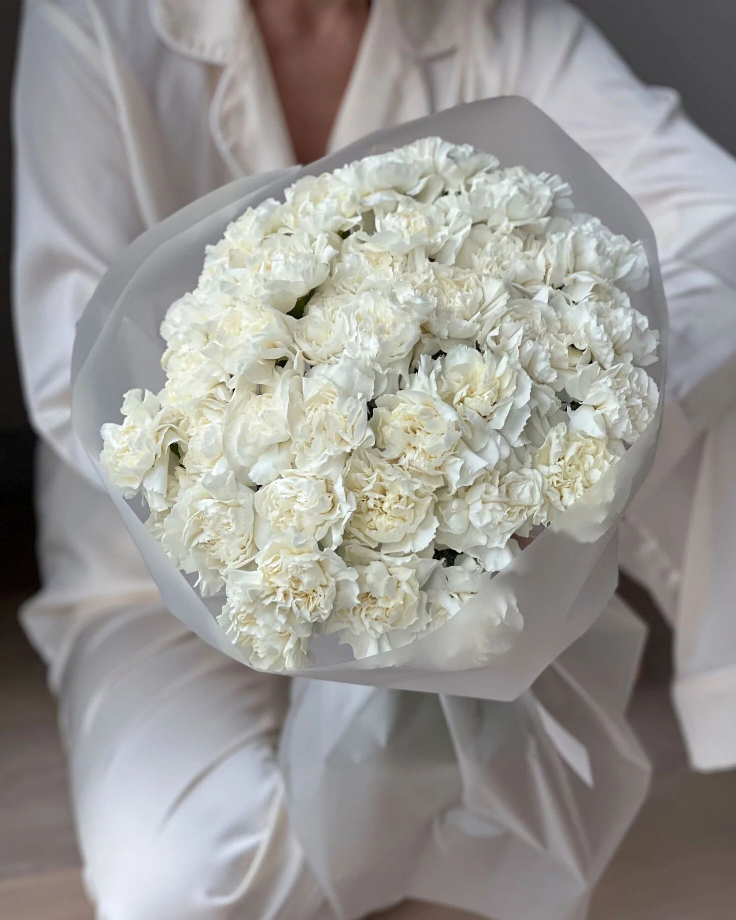 Состав: Диантус White - 35 шт, Матовая пленка белая кругом