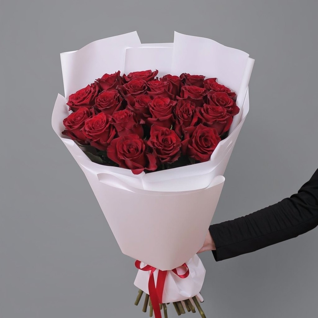 Состав: Роза Explorer - 21 шт, Матовая пленка белая складками