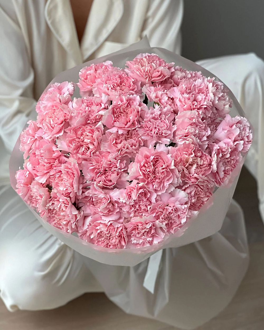 Состав: Диантус Pink - 35 шт, Матовая пленка белая кругом
