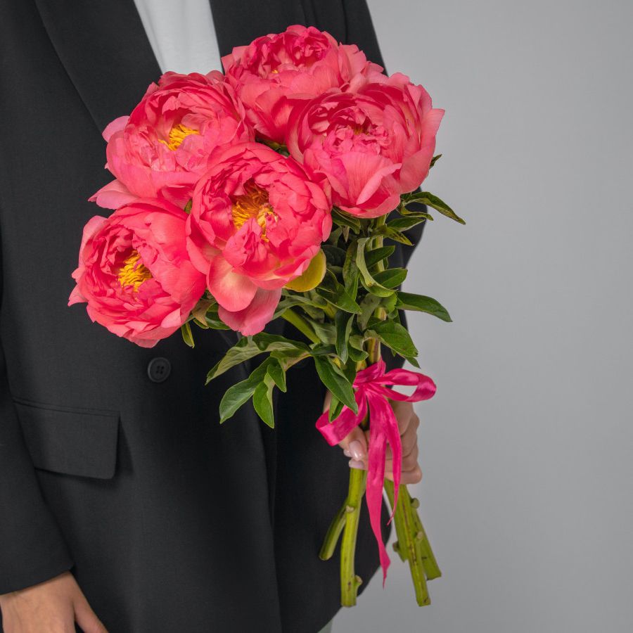 Состав: Пионы Coral Charm - 5 шт, Лента атласная