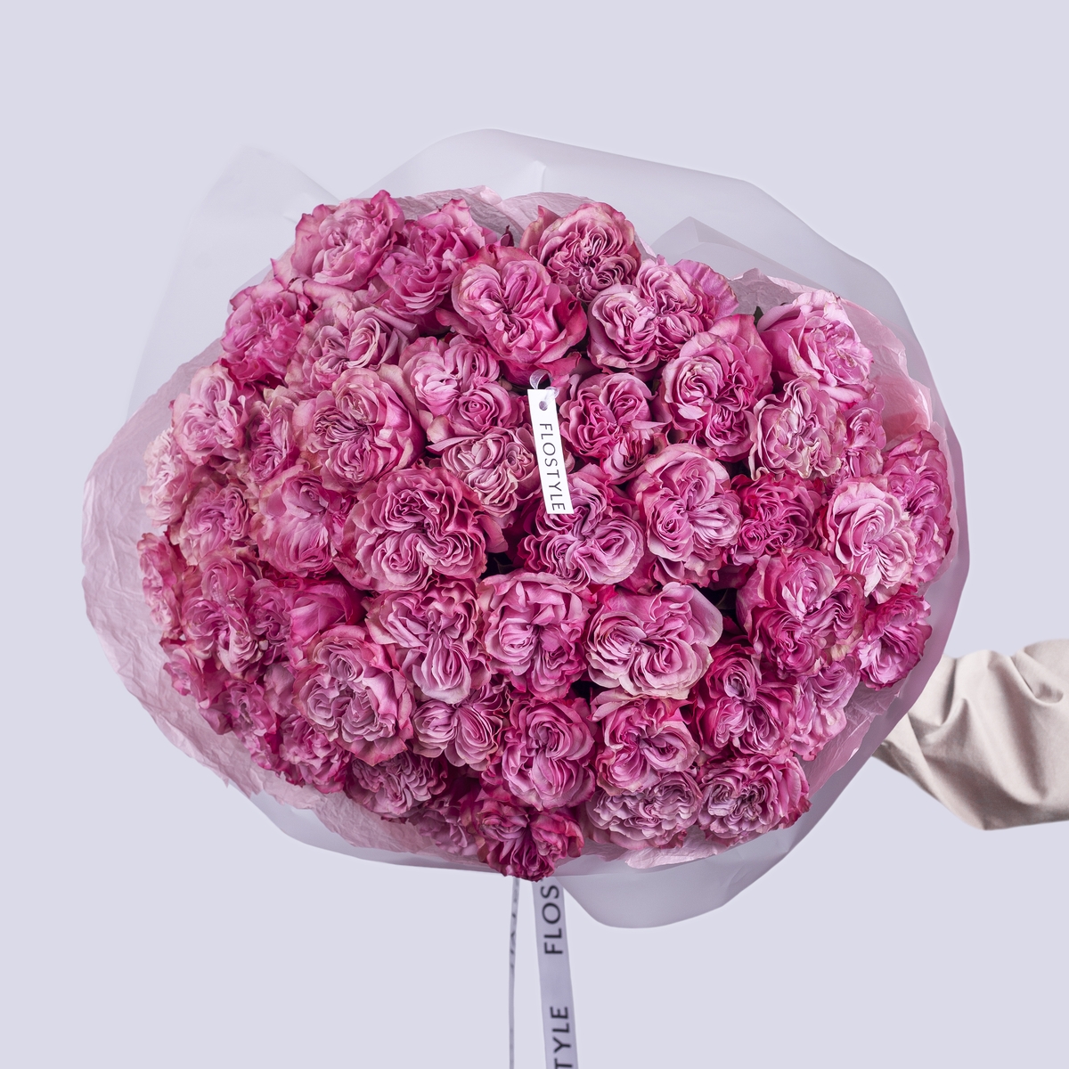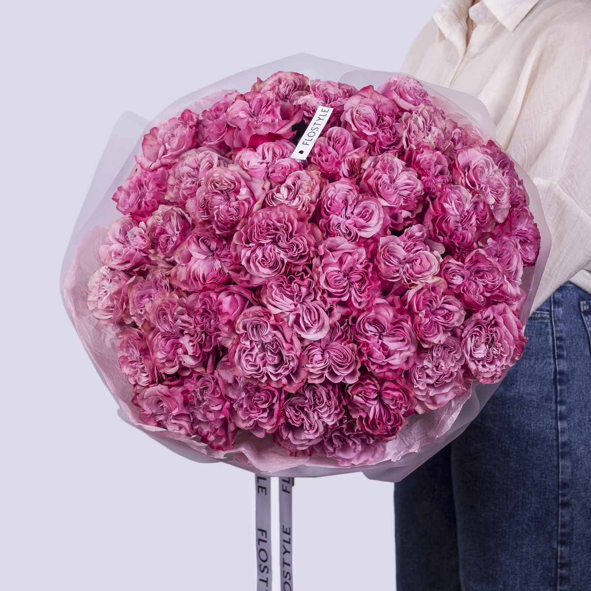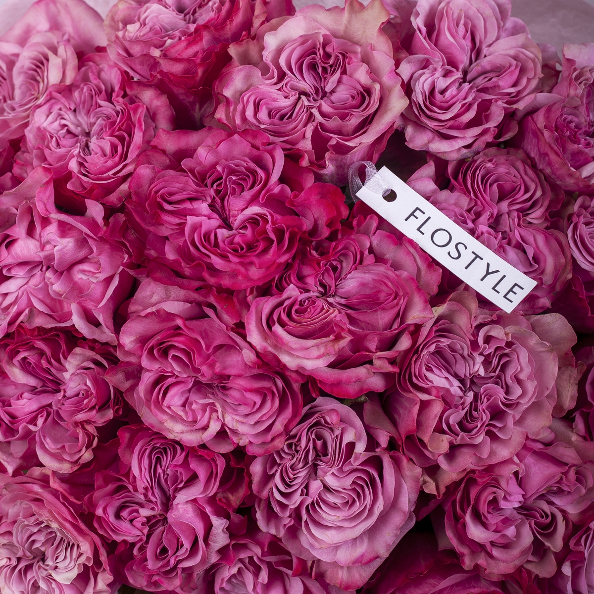 Состав: Роза Country Blues - 51 шт, Тишью розовая, Матовая пленка белая кругом