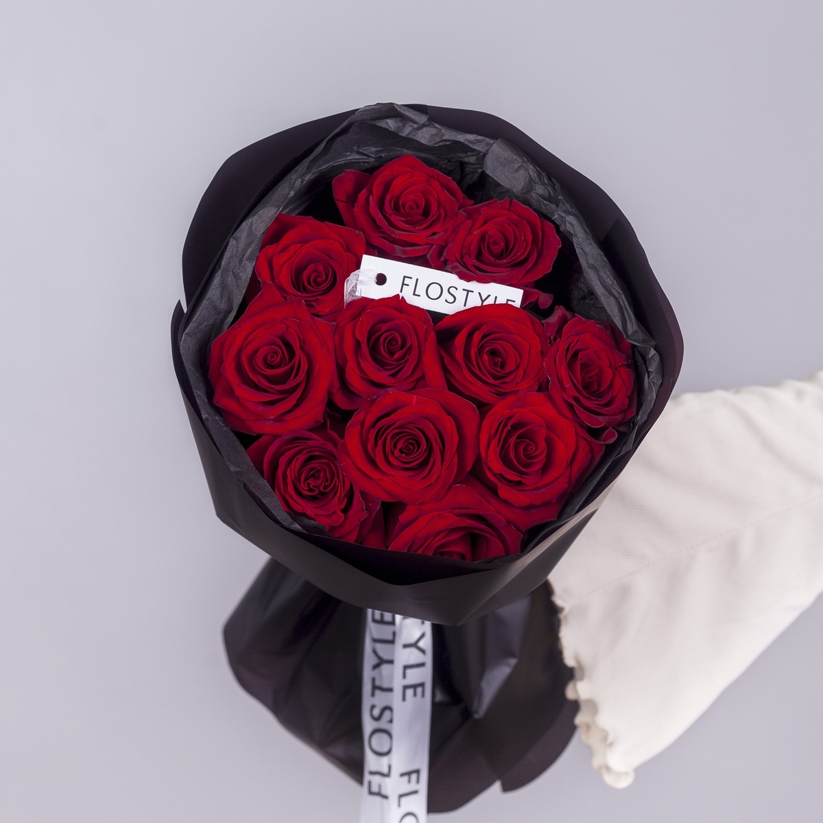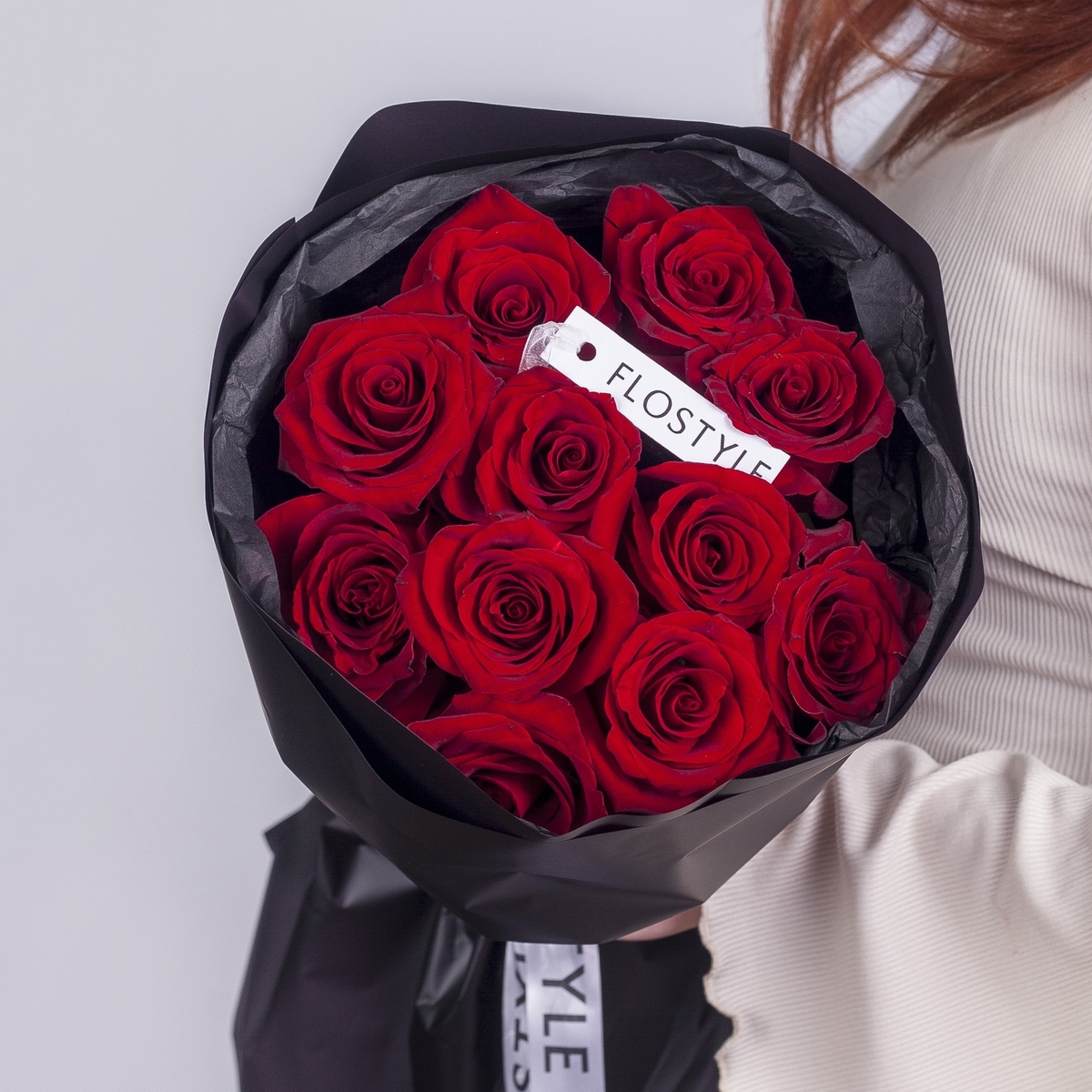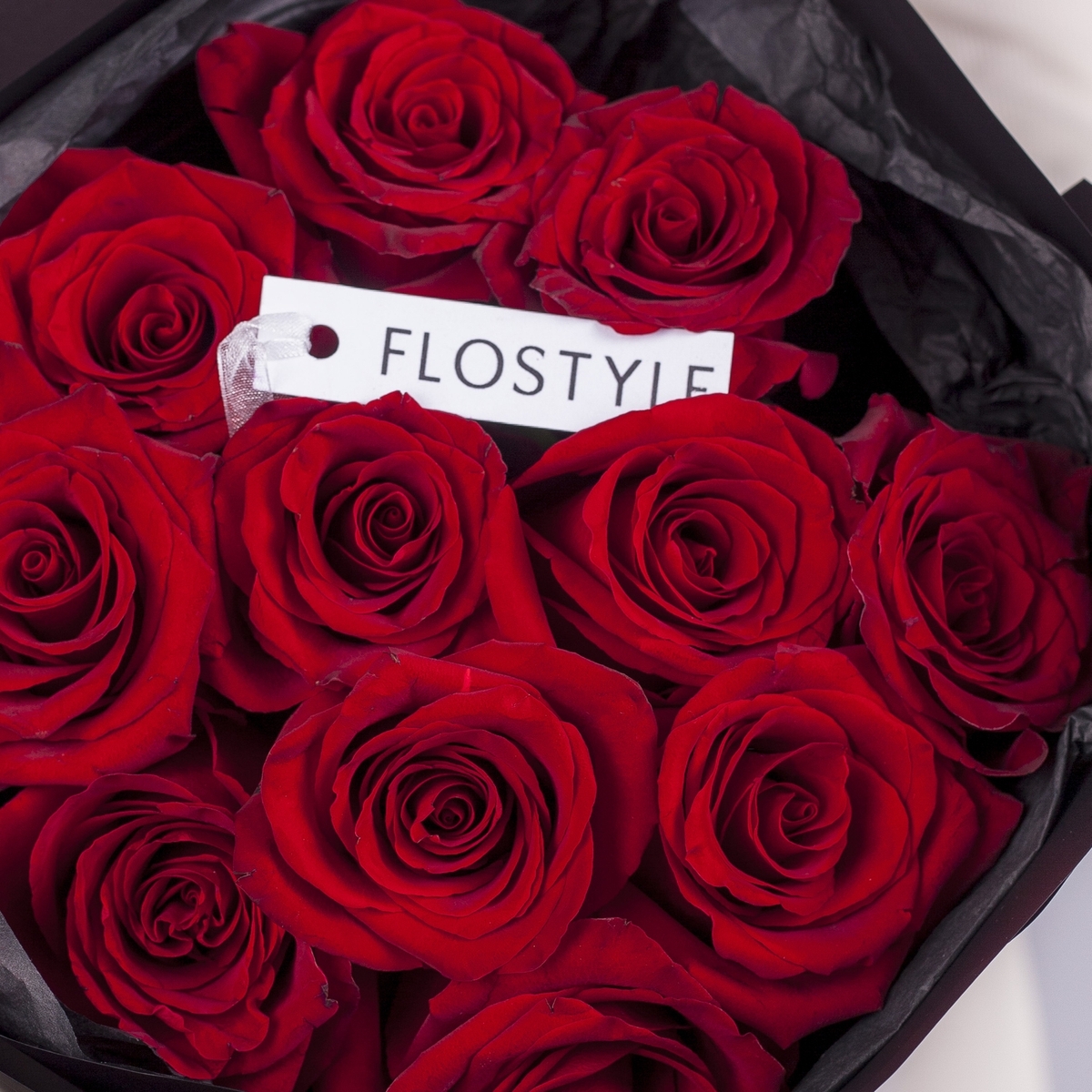 Состав: Роза Explorer - 11 шт, Тишью черная, Матовая пленка черная кругом