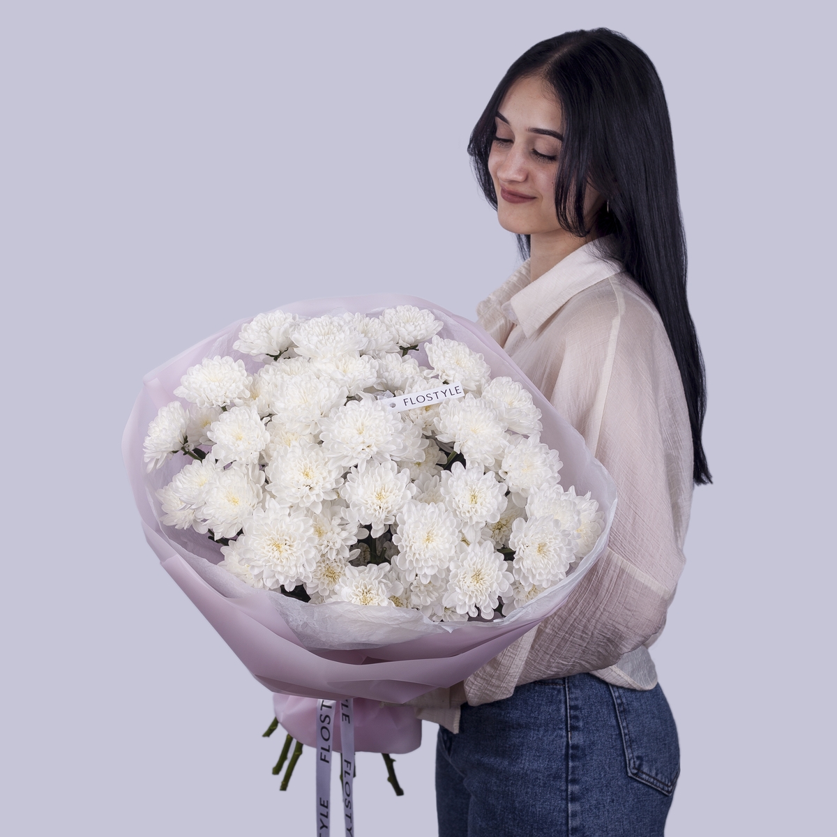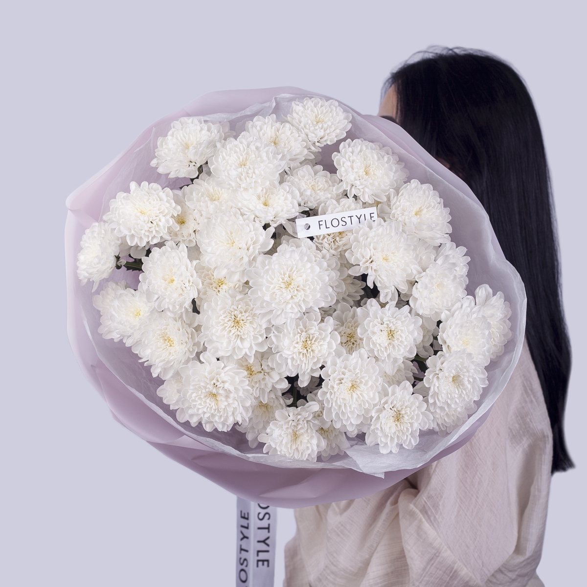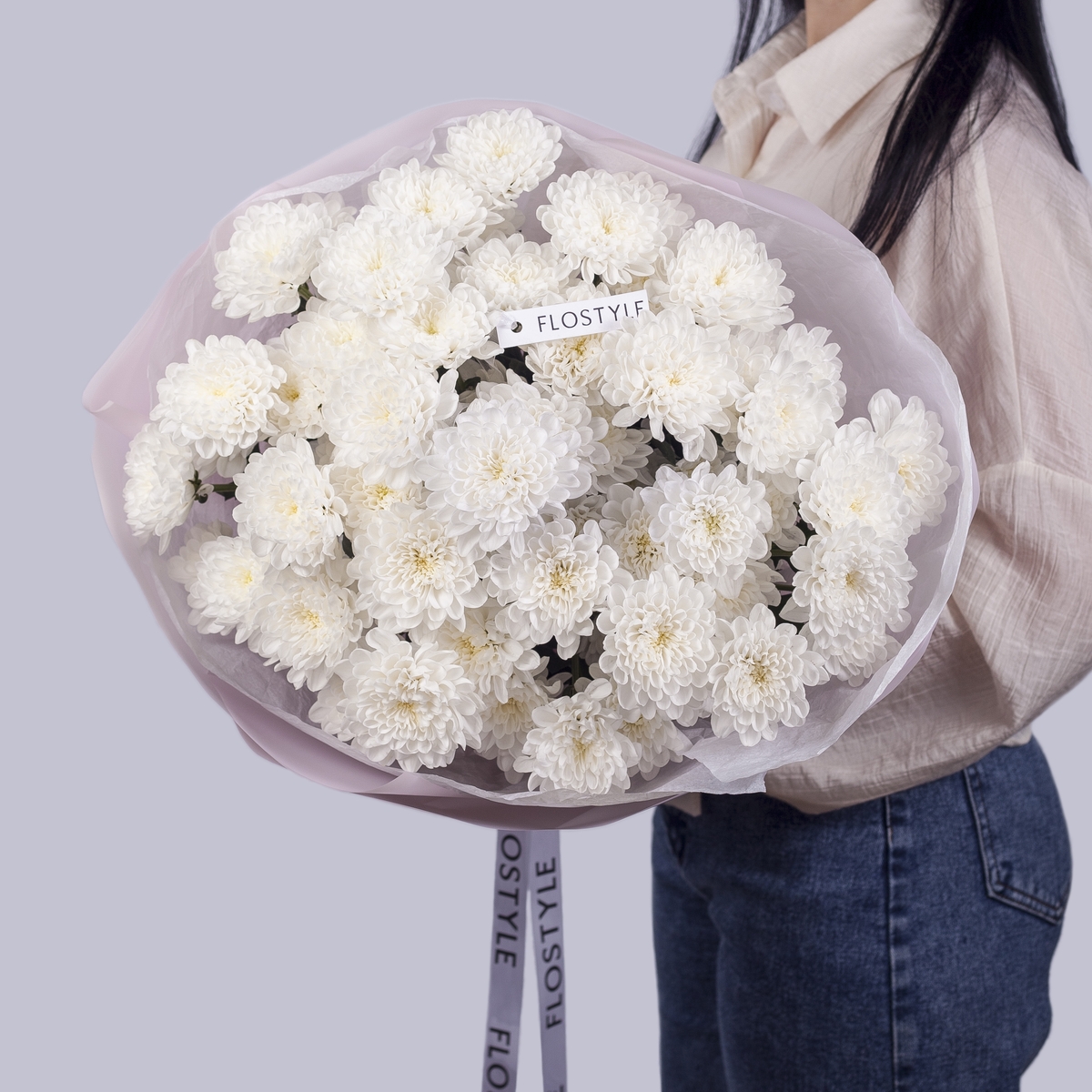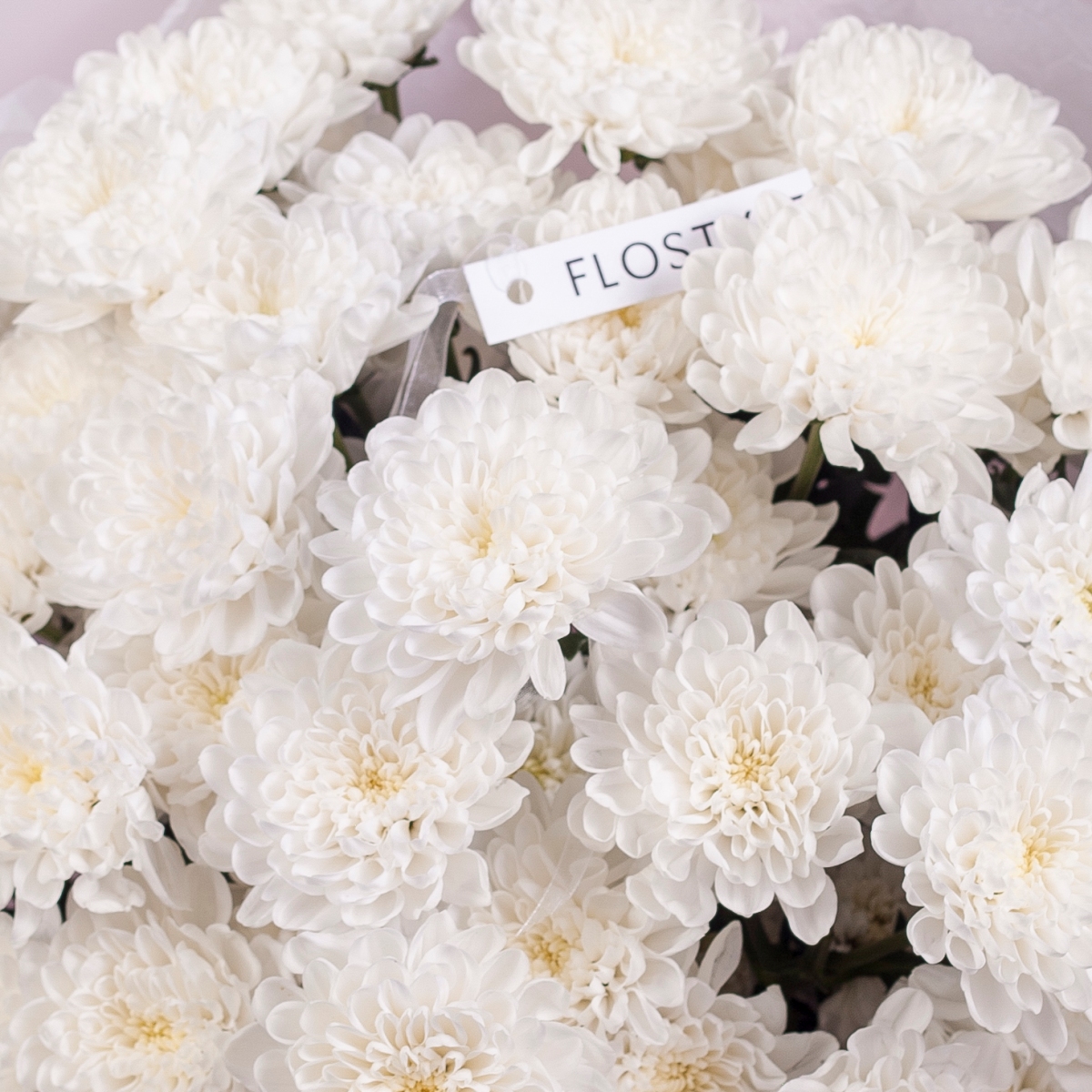 Состав: Хризантема Altaj - 9 шт, Тишью белая, Матовая пленка розовая кругом