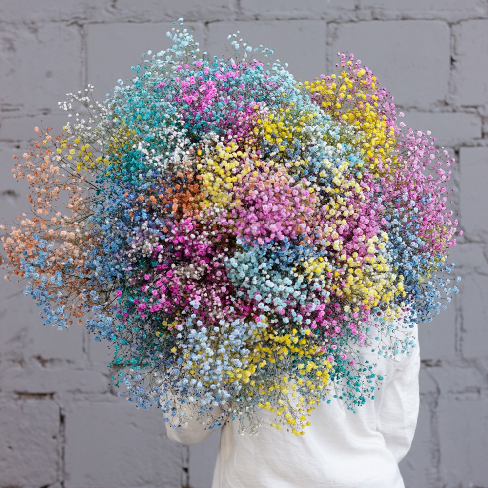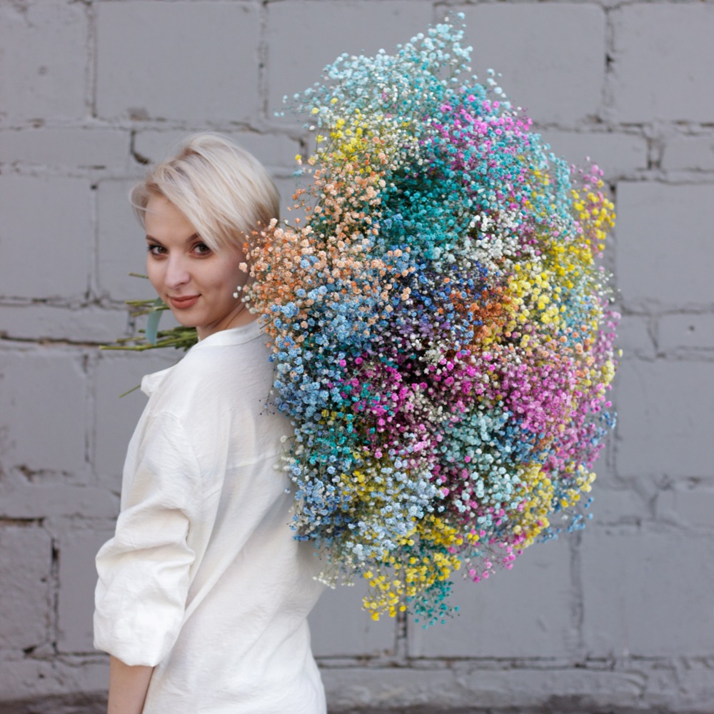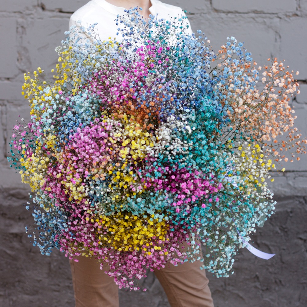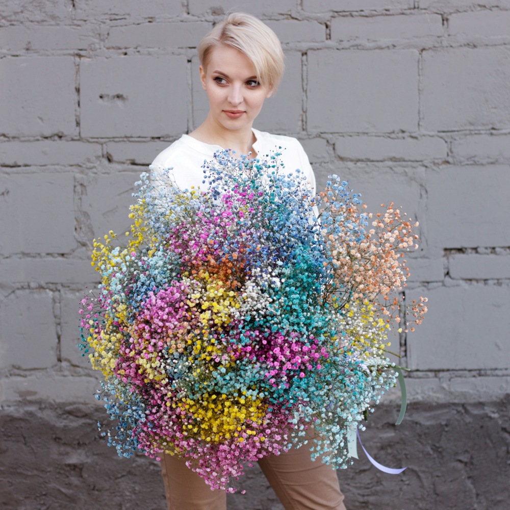 Состав: Гипсофила микс радужный — 51 шт, Атласная лента