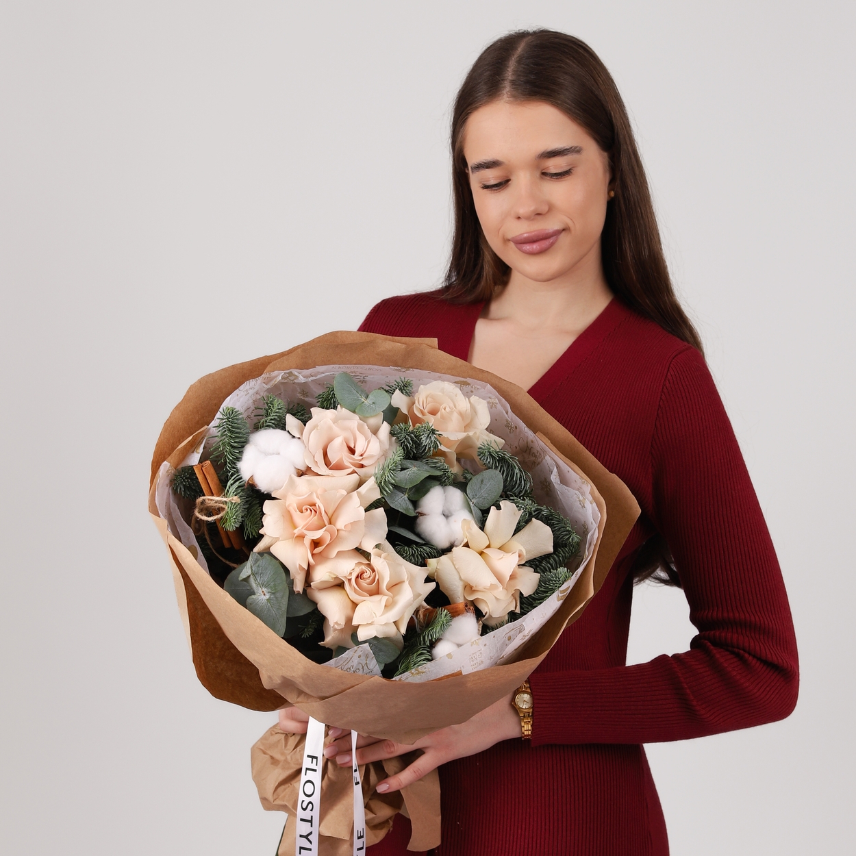 Авторский зимний букет с французскими розами
