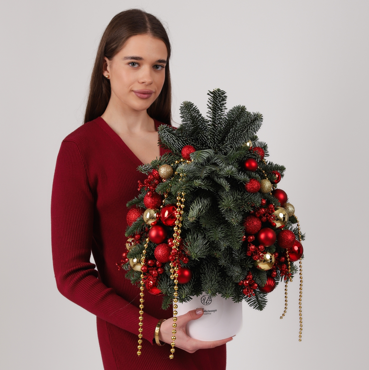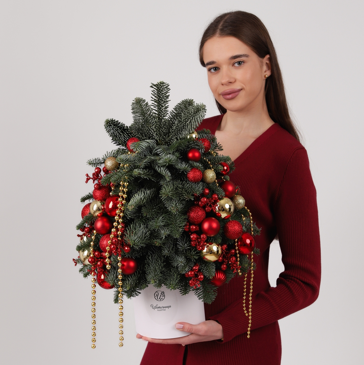 Состав: Коробка S белая, Шар средний - 18 шт, Шар маленький - 10 шт, Бусы - 2 шт, Искусственные ягоды - 5 шт, Нобилис - 3 шт, Лента атласная