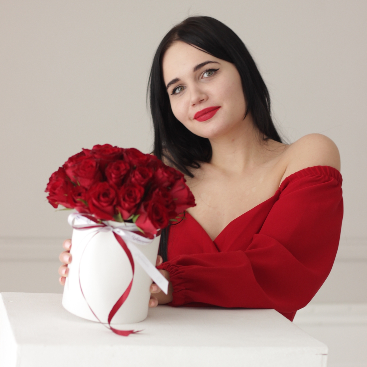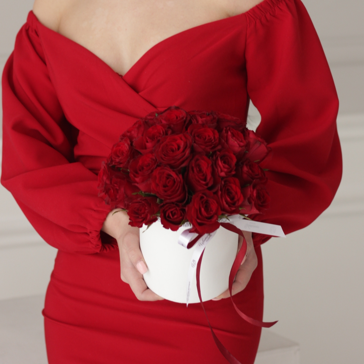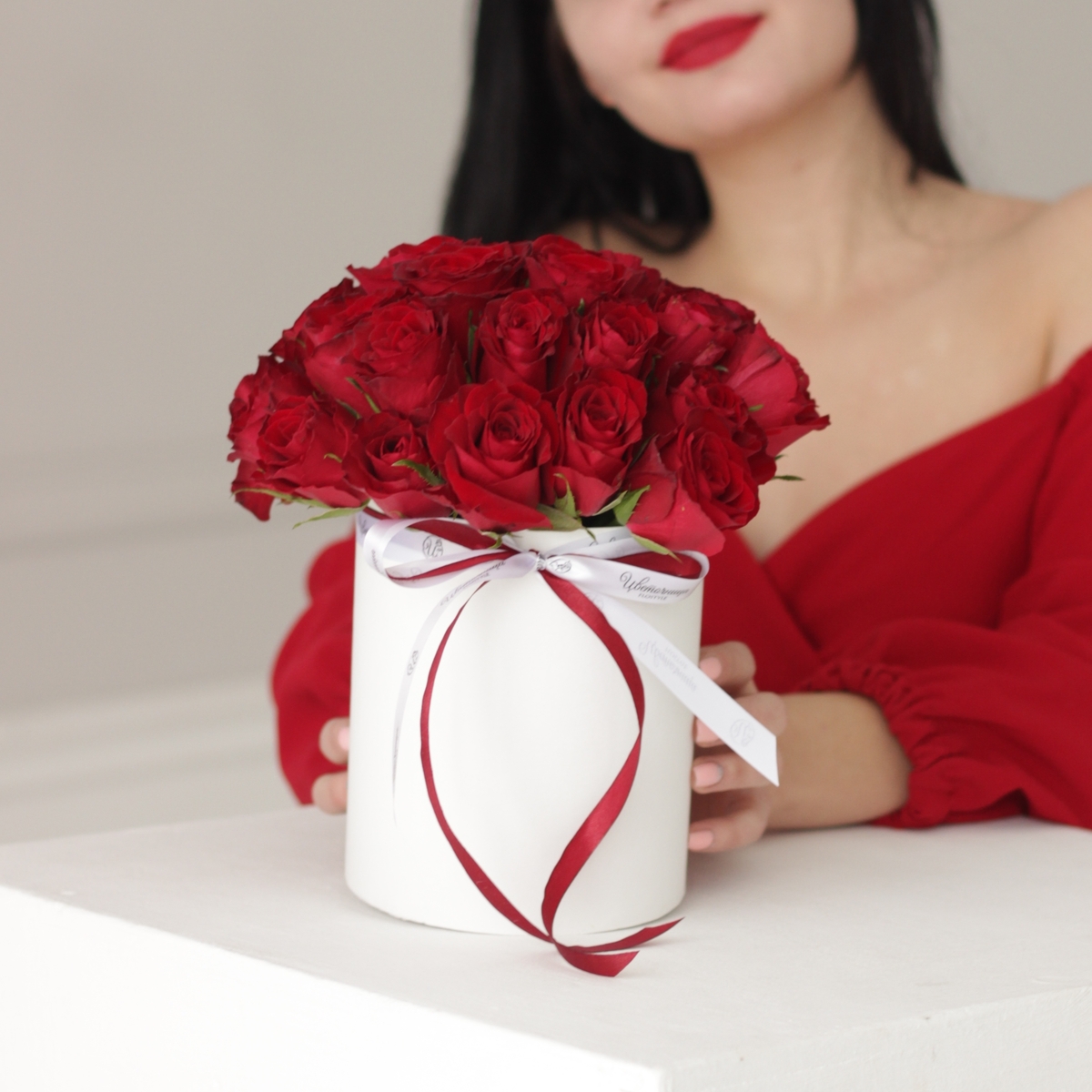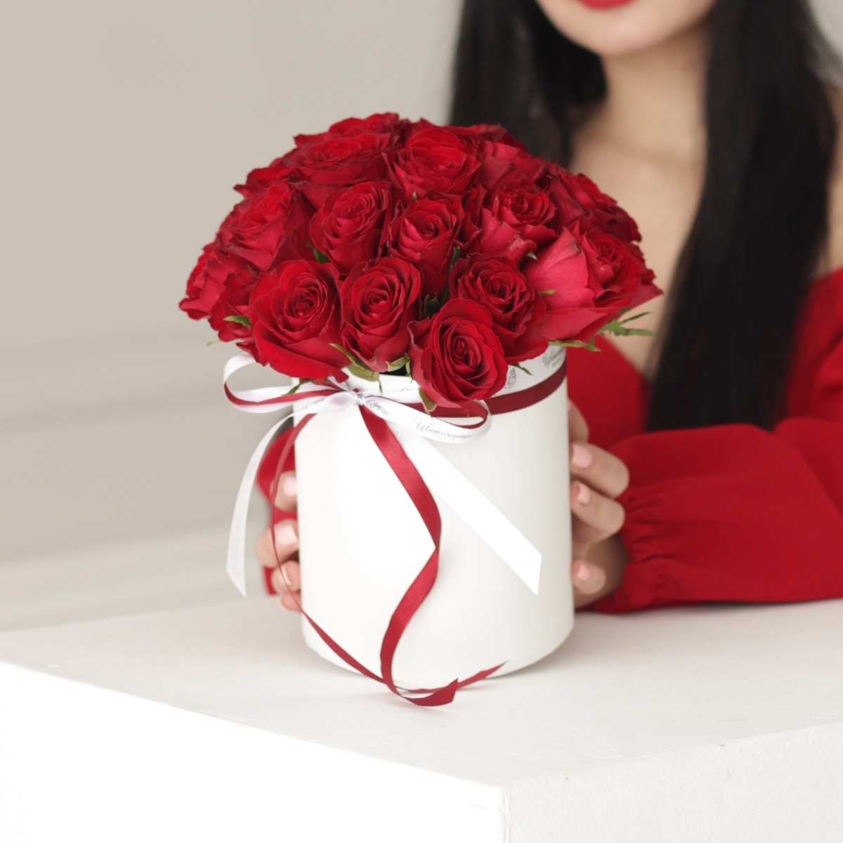 Состав: Коробка S (White), Роза Kenya Red сортовая - 25 шт, Атласная лента