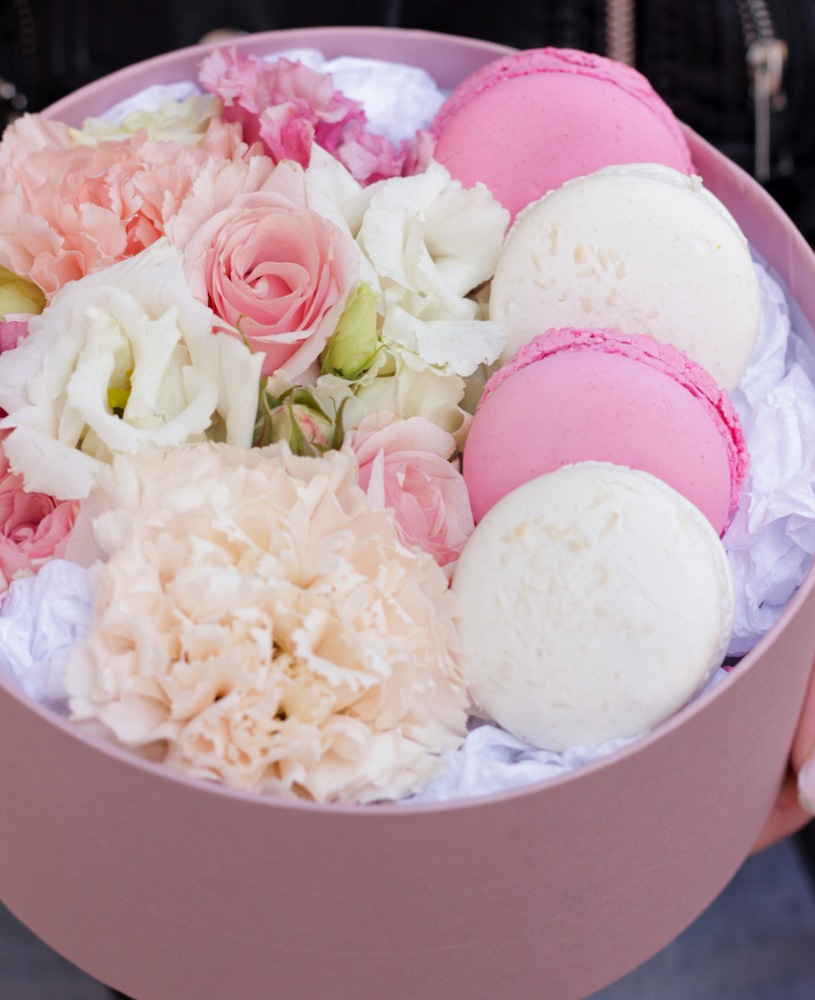 Сладкий подарок цветы с макаронс