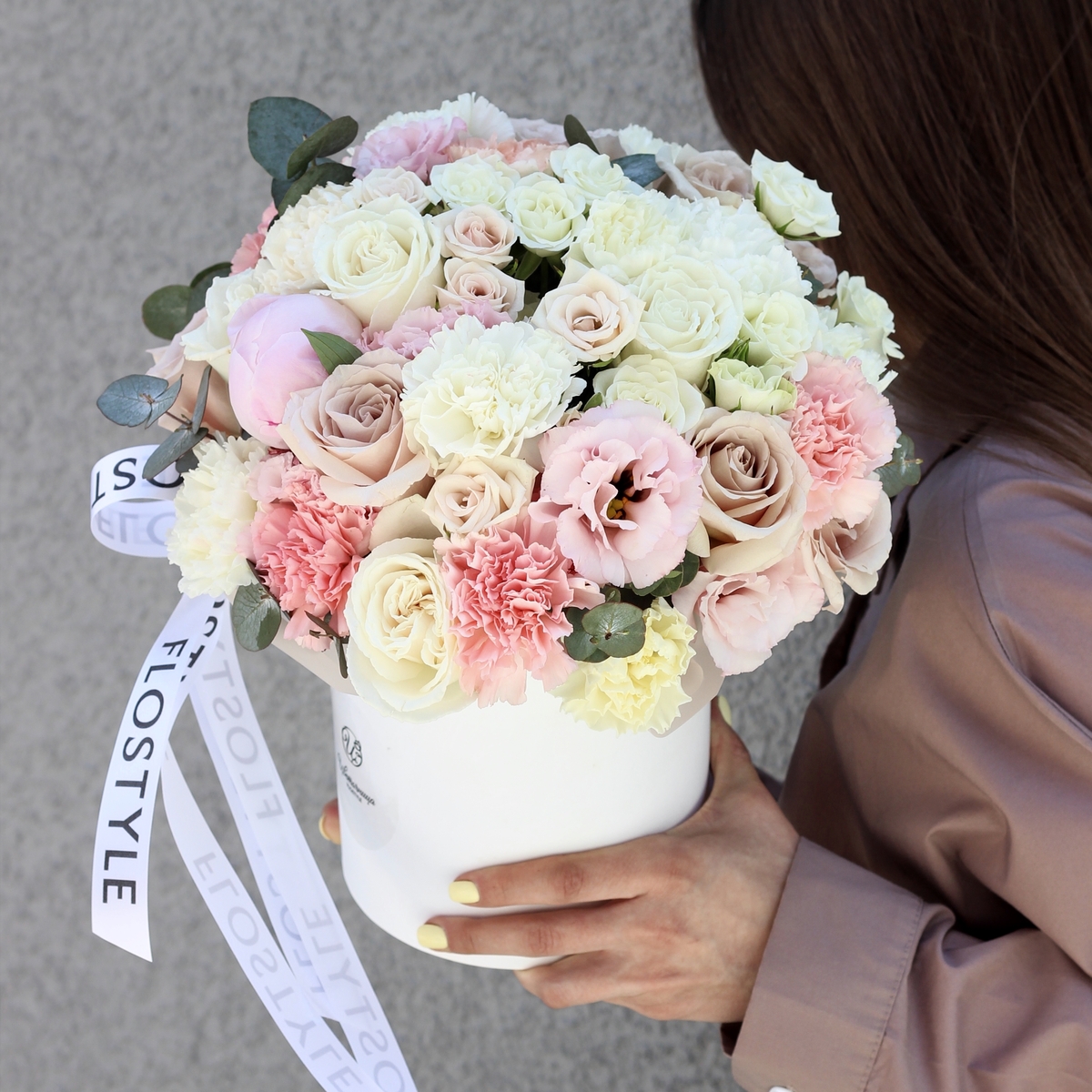 Цветы в коробке в нежных тонах