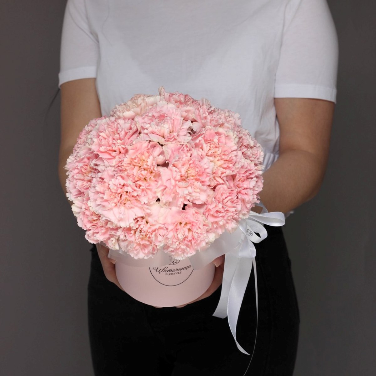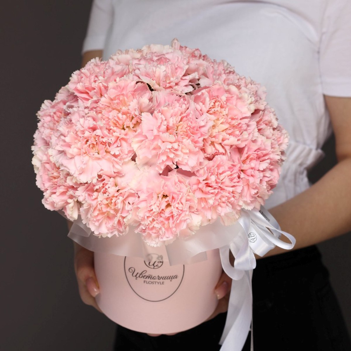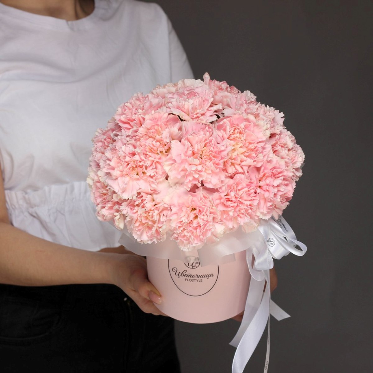 Цветы в шляпной коробке. Диантусы гвоздика розовая